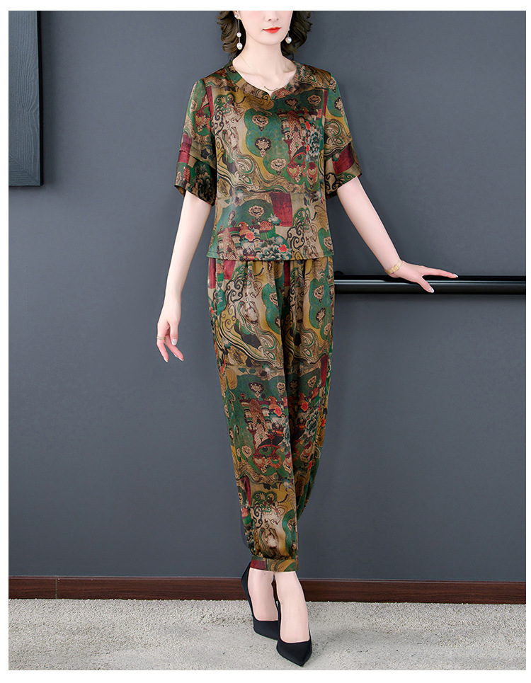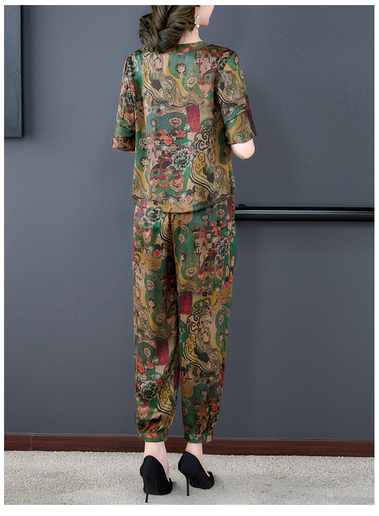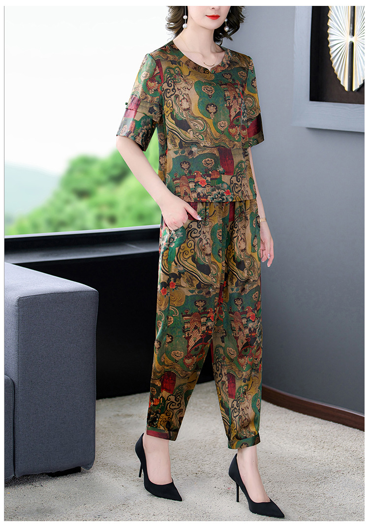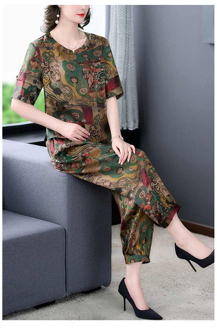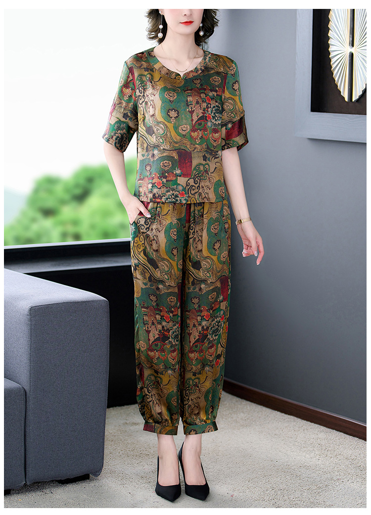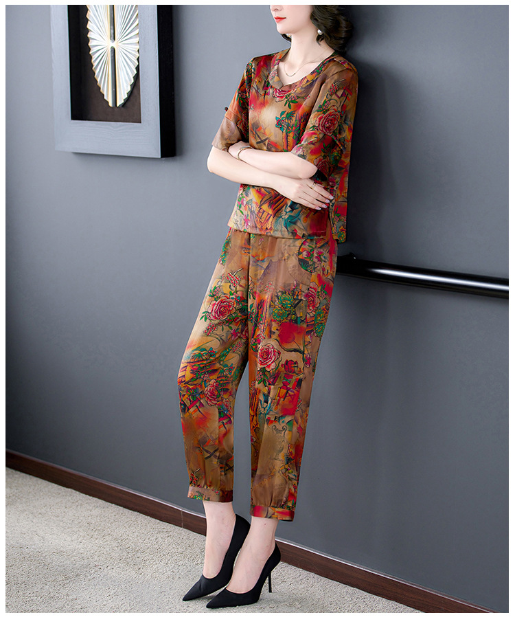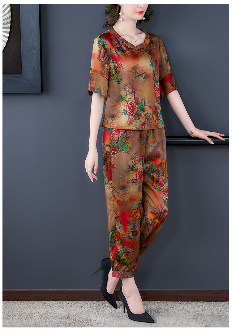 仿香云纱套装,中年妈妈气质通勤休闲时尚两件套YMR8672