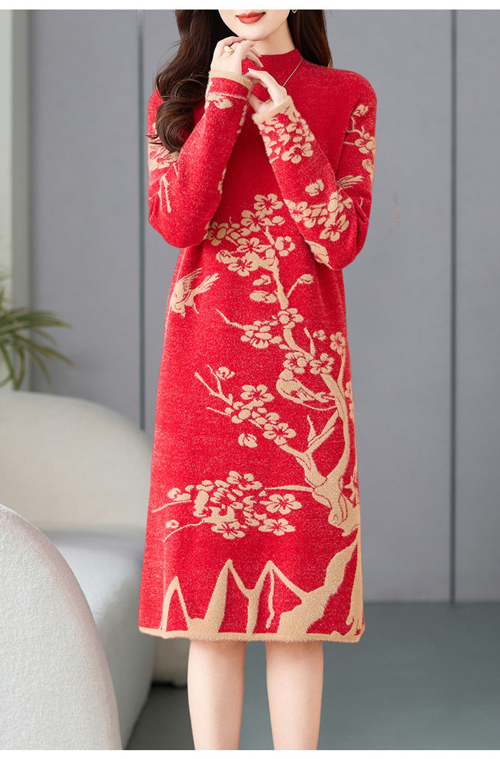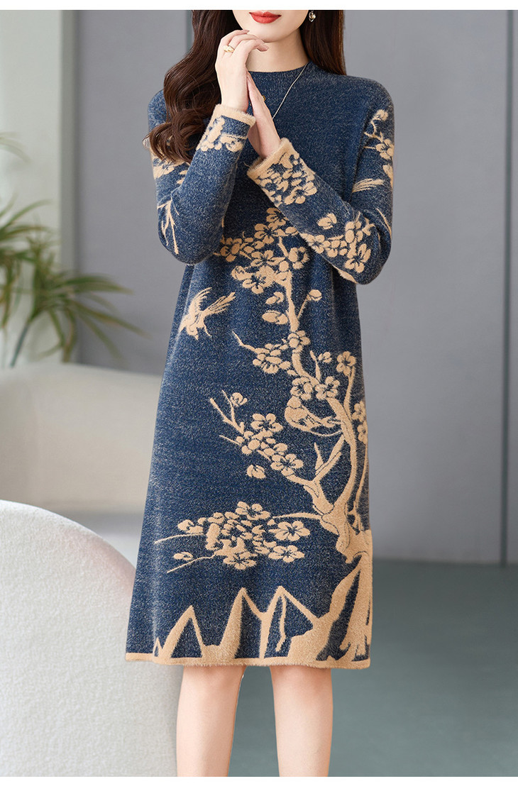 2024新款加厚中长款仿水貂绒毛衣宽松打底连衣裙WWM-WJ2626