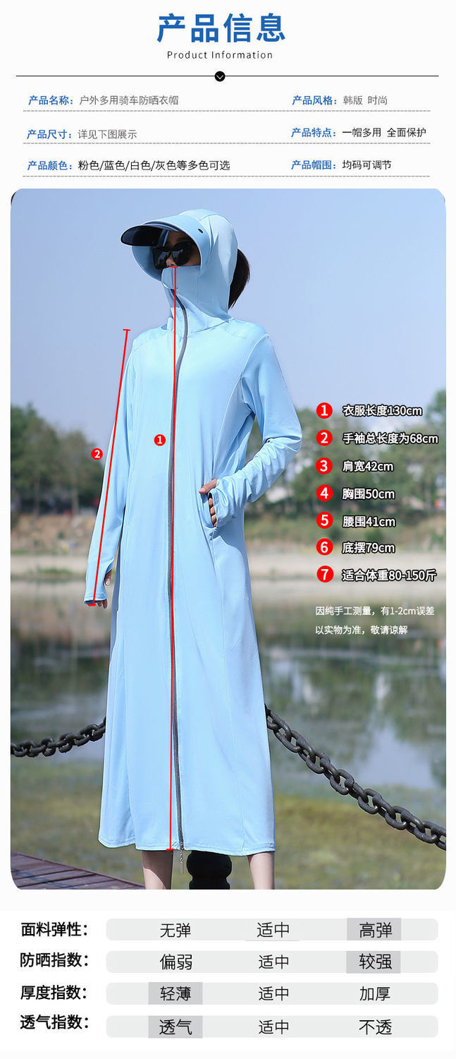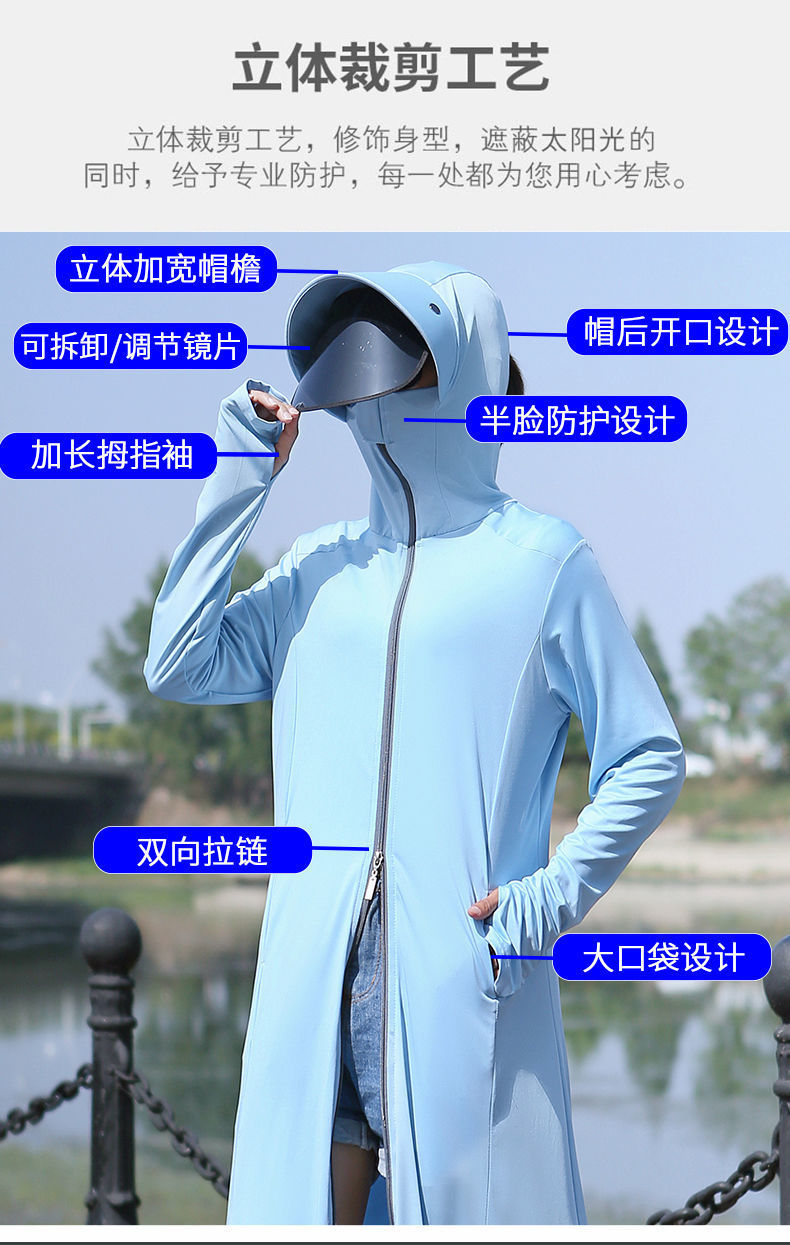 【ins同款 防晒50+++】2024夏新款透气薄款冰丝长袖长款全身服升级款防晒衣sjmh34