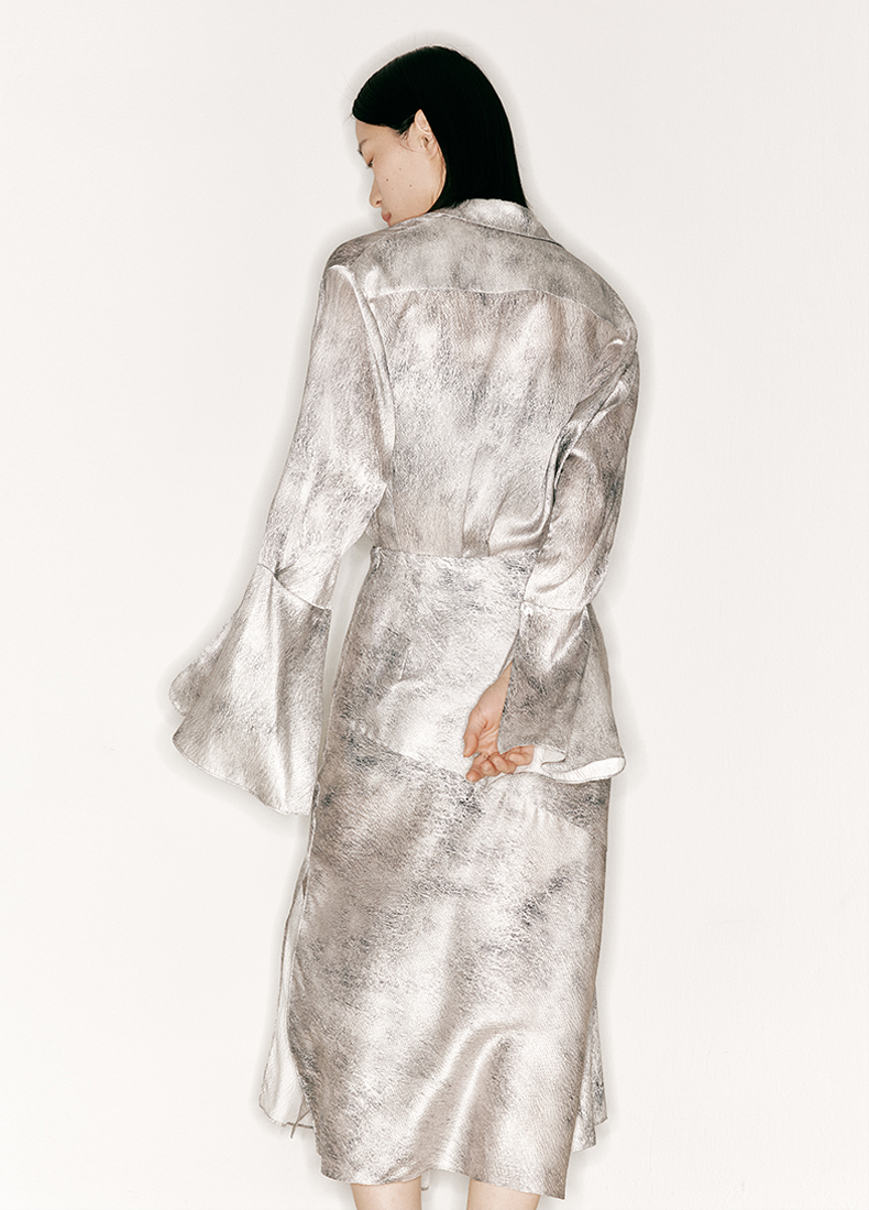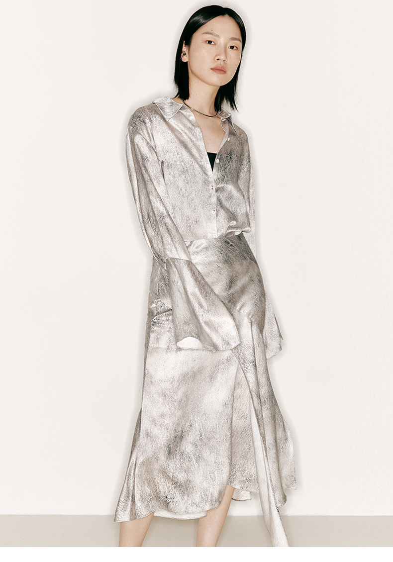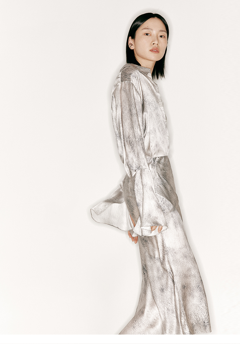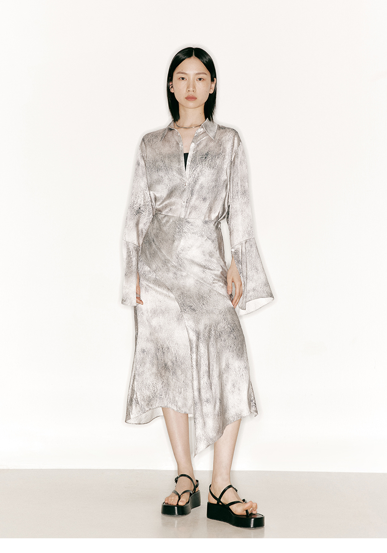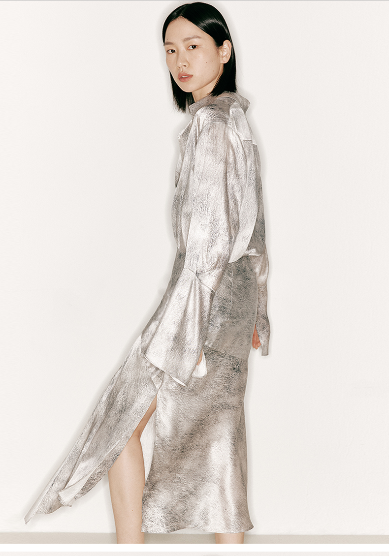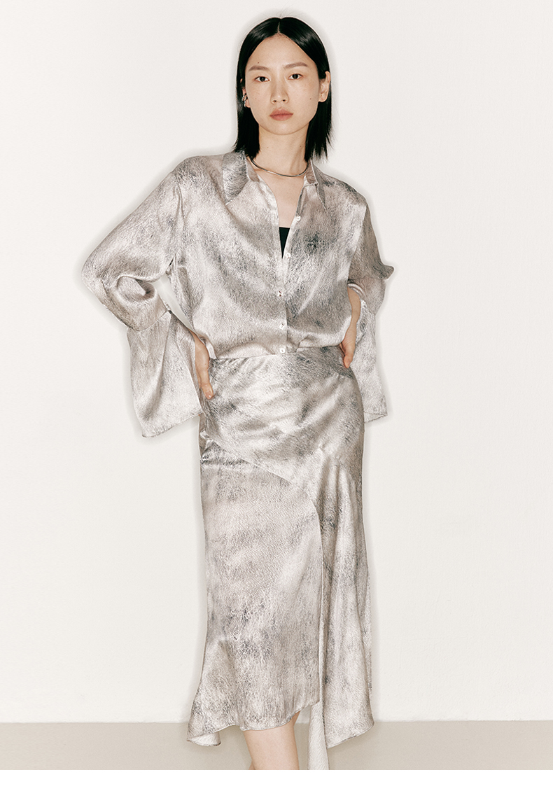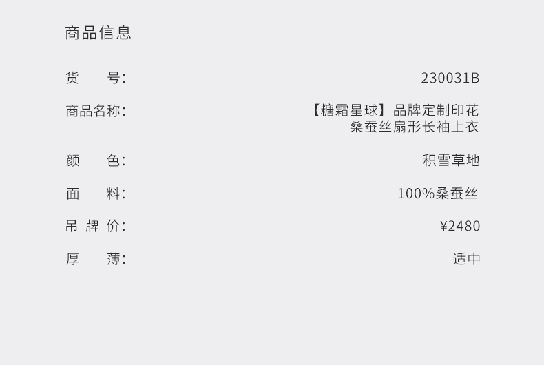【糖霜星球】品牌定制印花桑蚕丝扇形长袖上衣/230031B