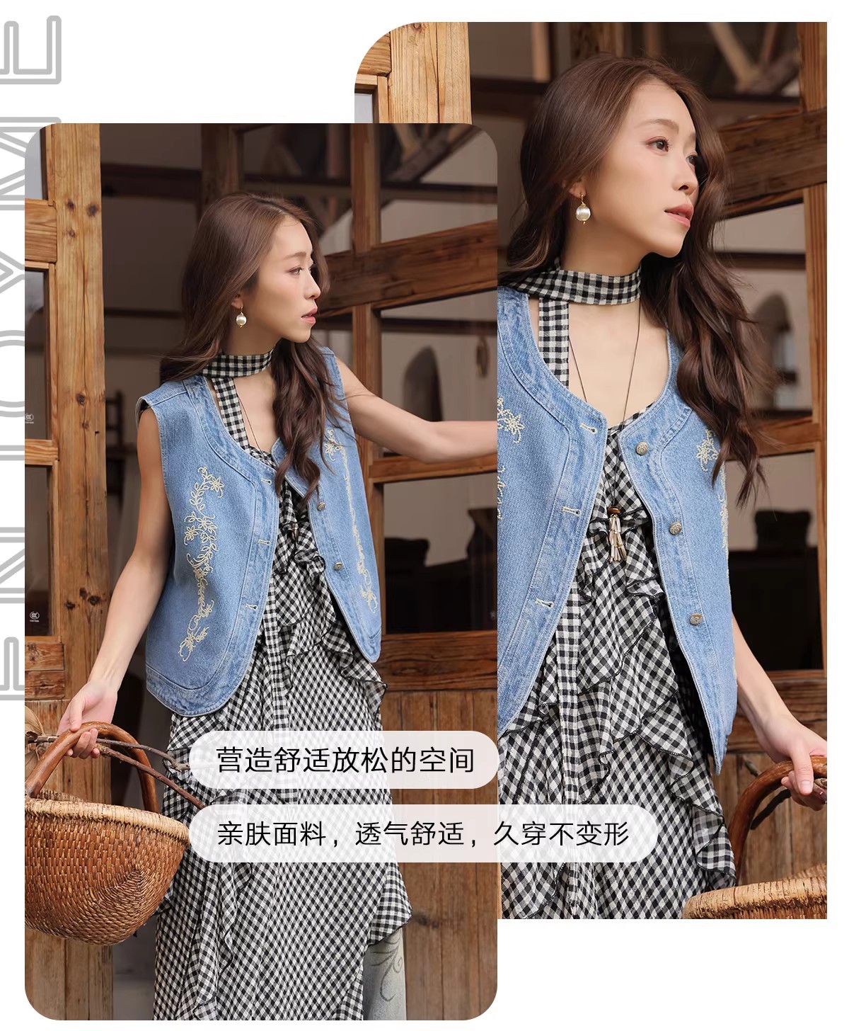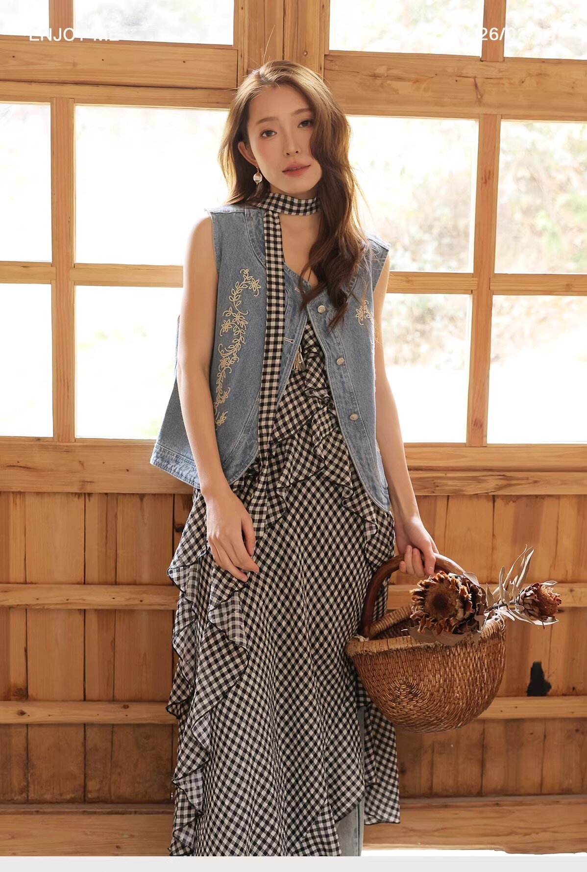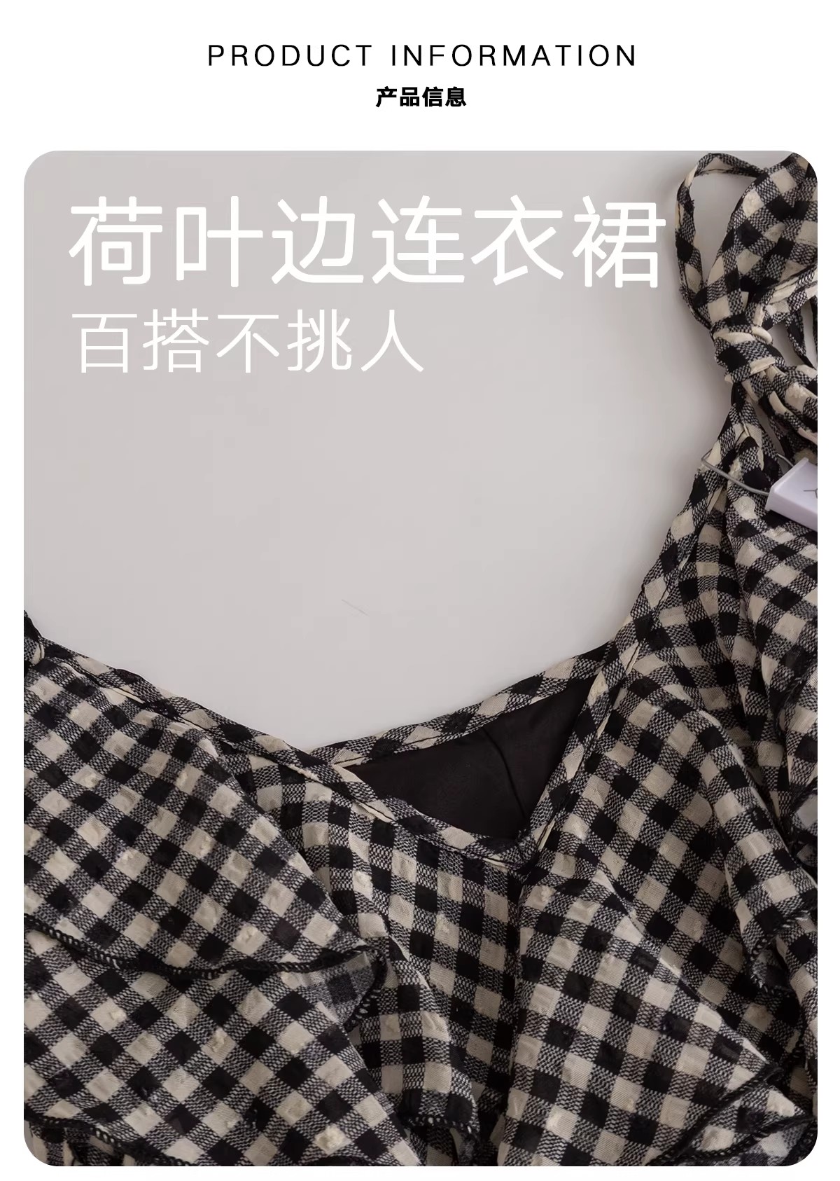 【门店同款】ENJOY春季“序光之旅”格纹荷叶边吊带连衣裙 169253409