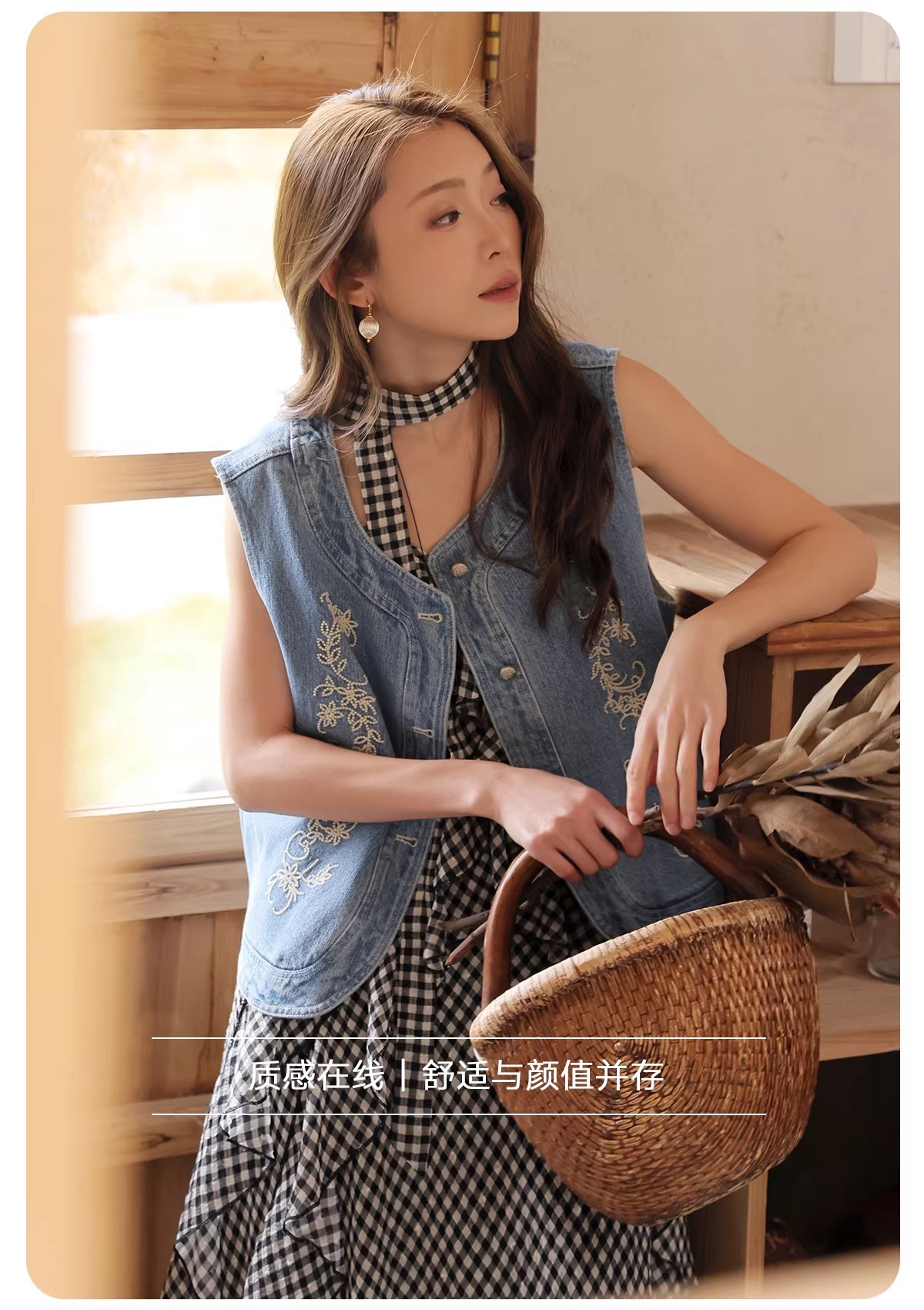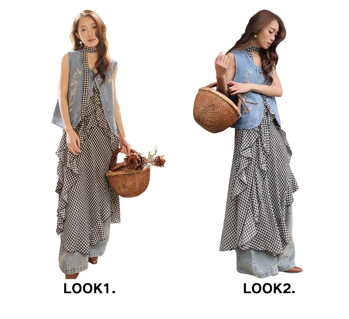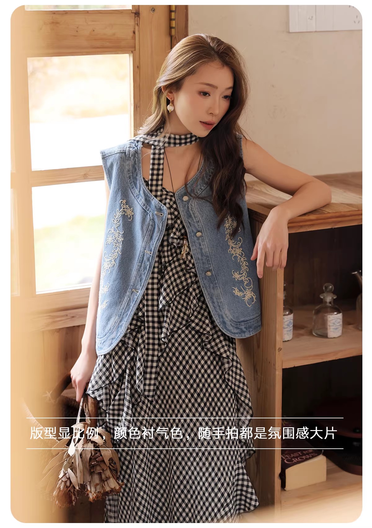 【门店同款】ENJOY春季“序光之旅”格纹荷叶边吊带连衣裙 169253409