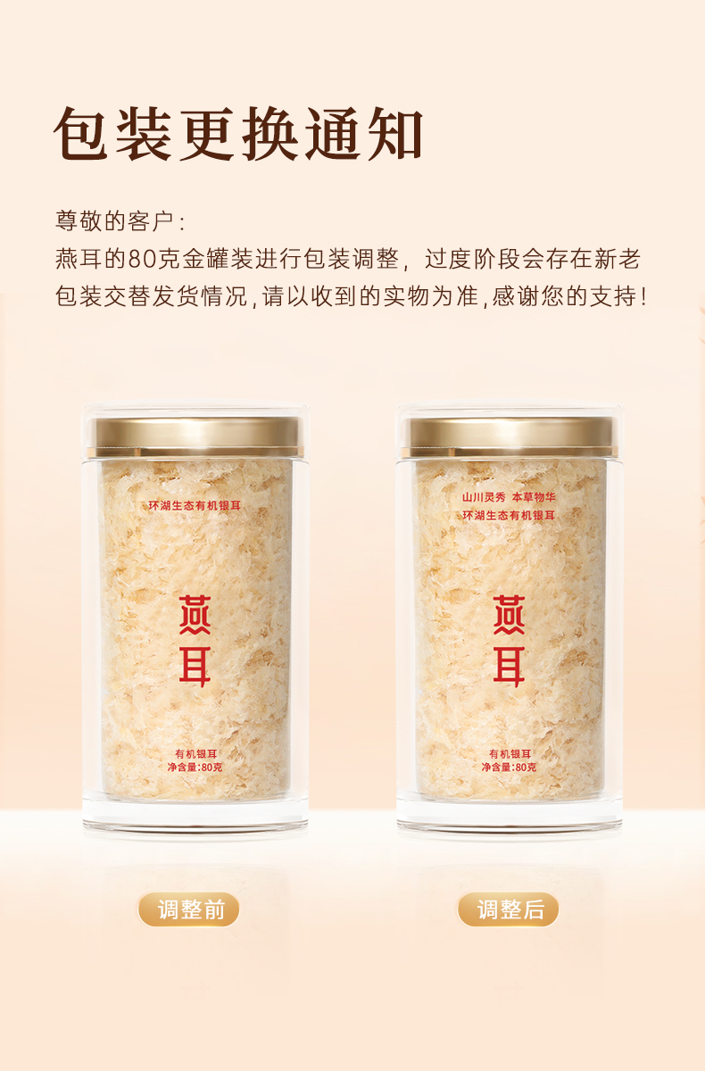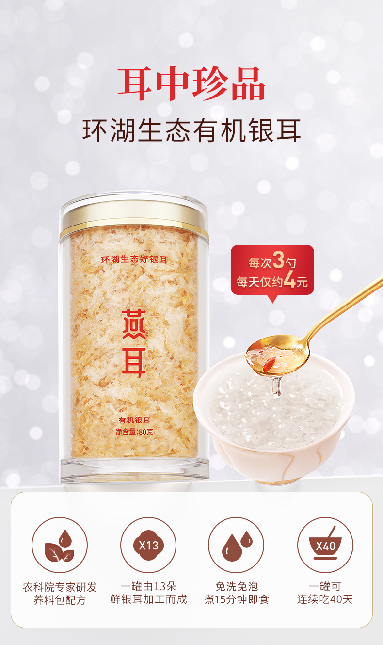 【拍1得10】燕耳环湖生态有机银耳精美罐装80g 高性价比 免洗免泡发 焖制40分钟即食