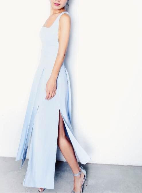 Atelier Miss Lu/ Gwyneth- 水蓝色高开衩露背礼服裙