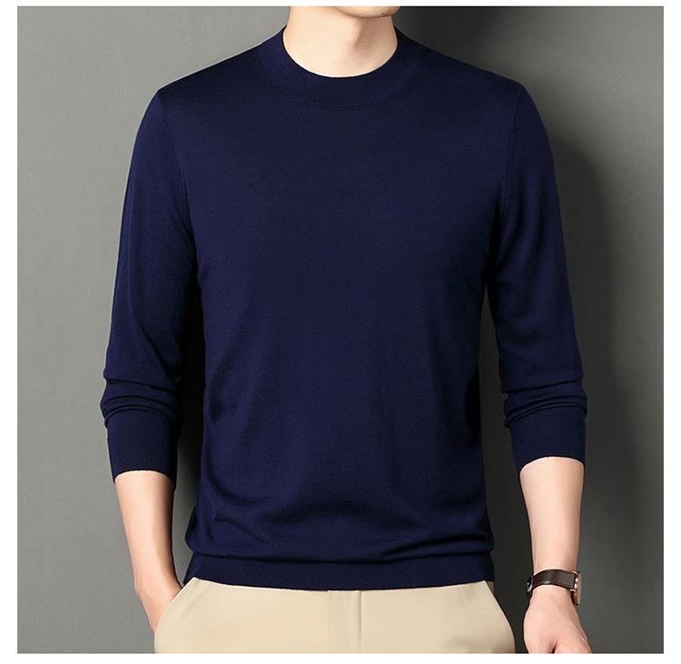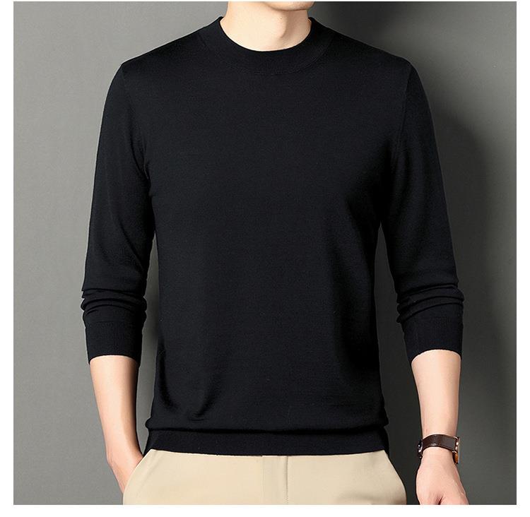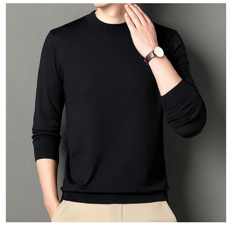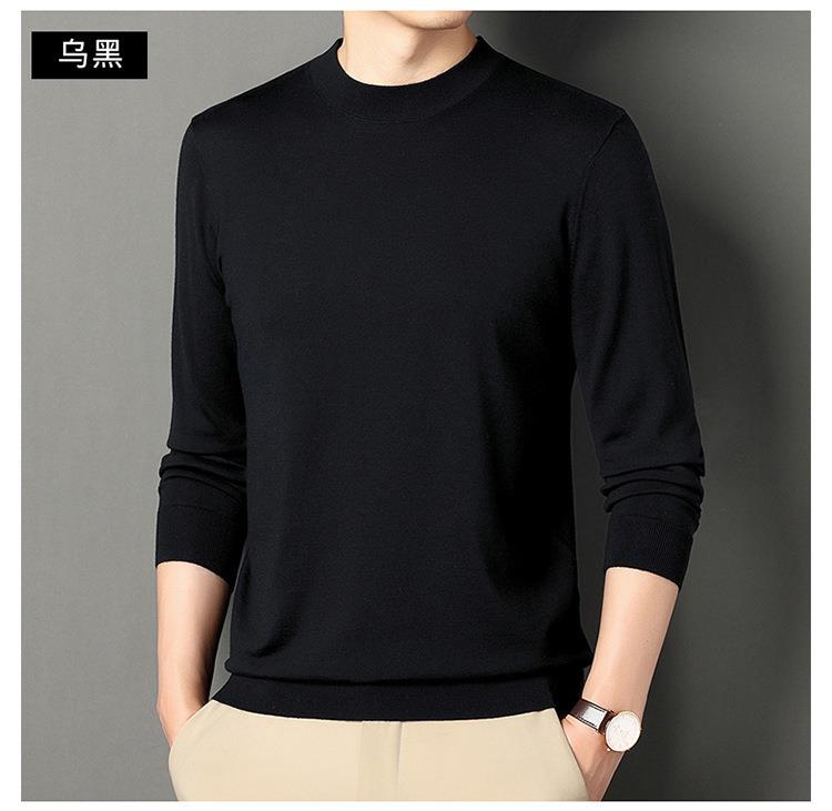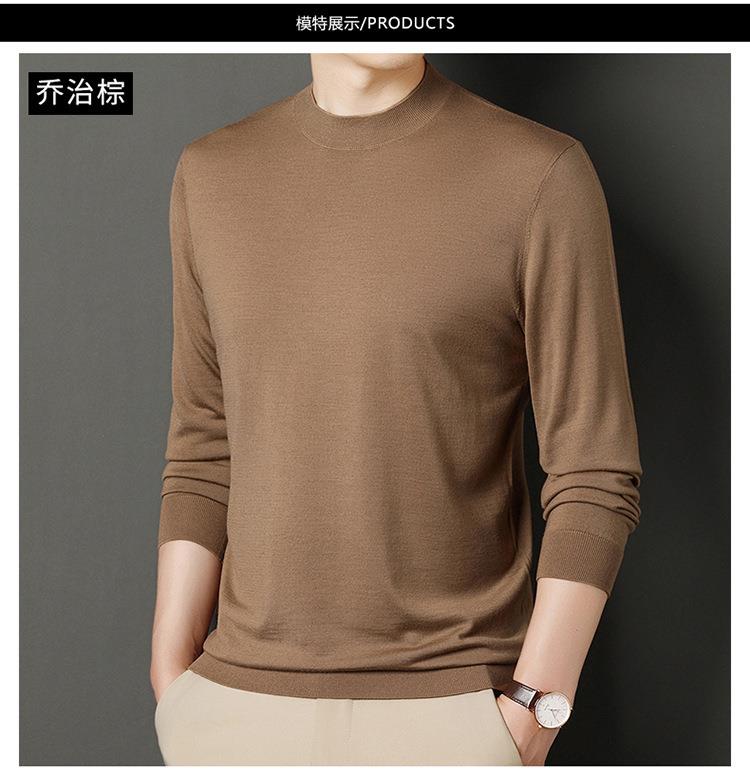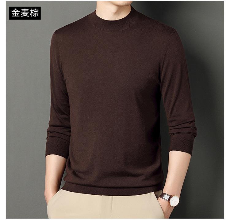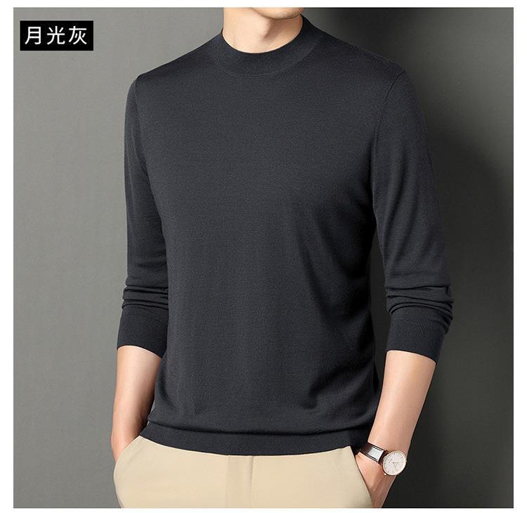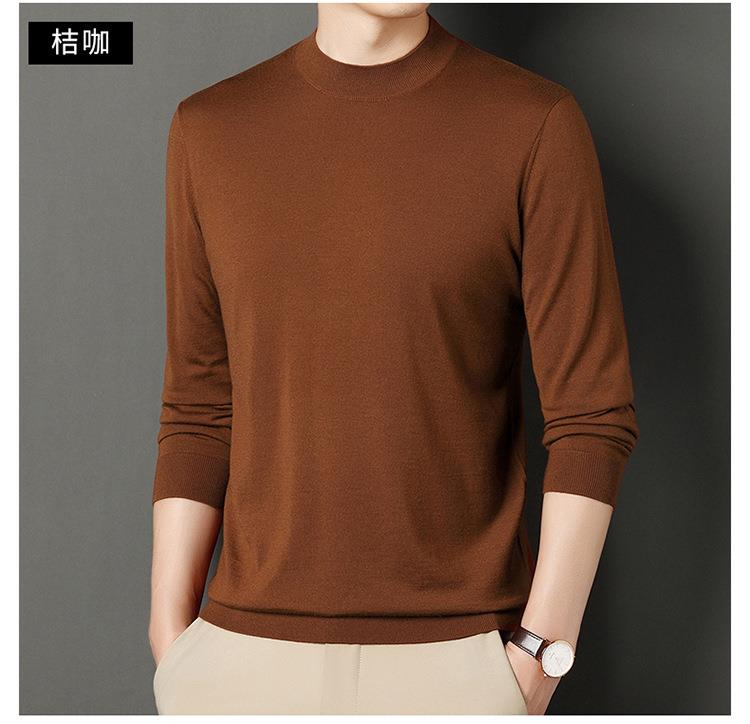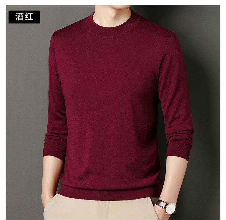 纯羊毛打底衫毛衣男士秋冬季新款半高领简约百搭纯色羊毛衫上衣男
