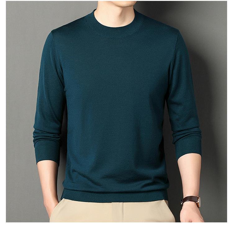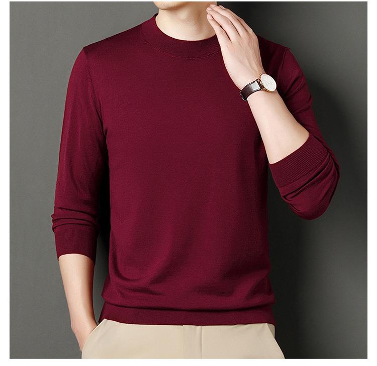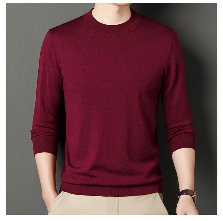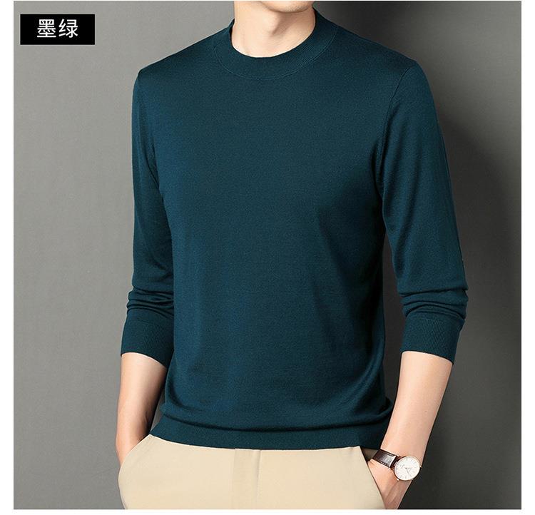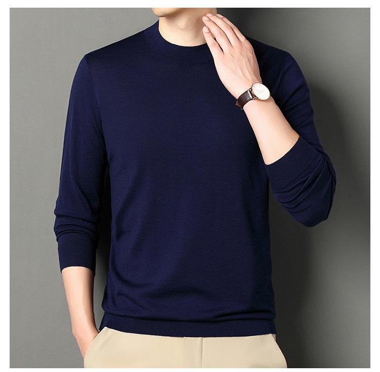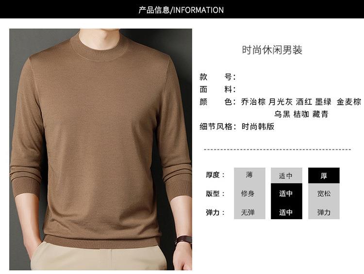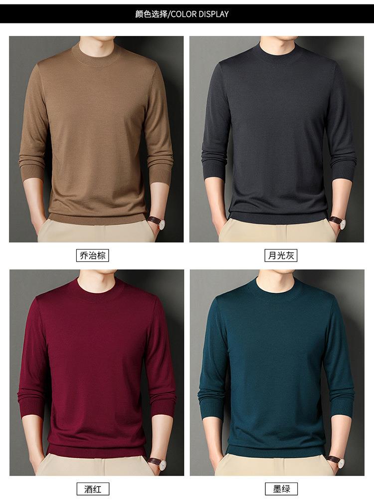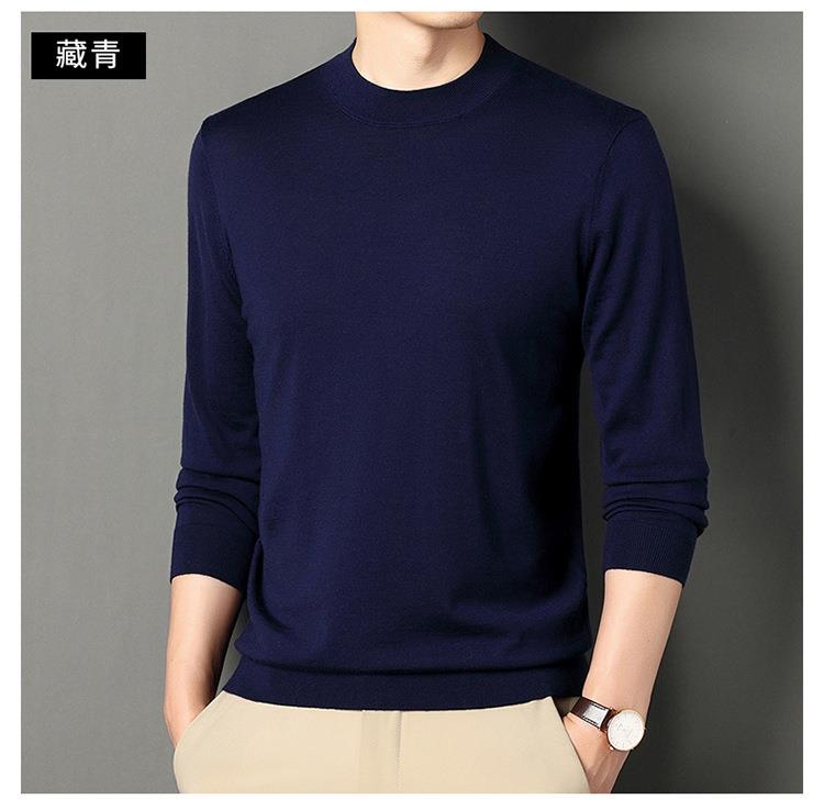 纯羊毛打底衫毛衣男士秋冬季新款半高领简约百搭纯色羊毛衫上衣男