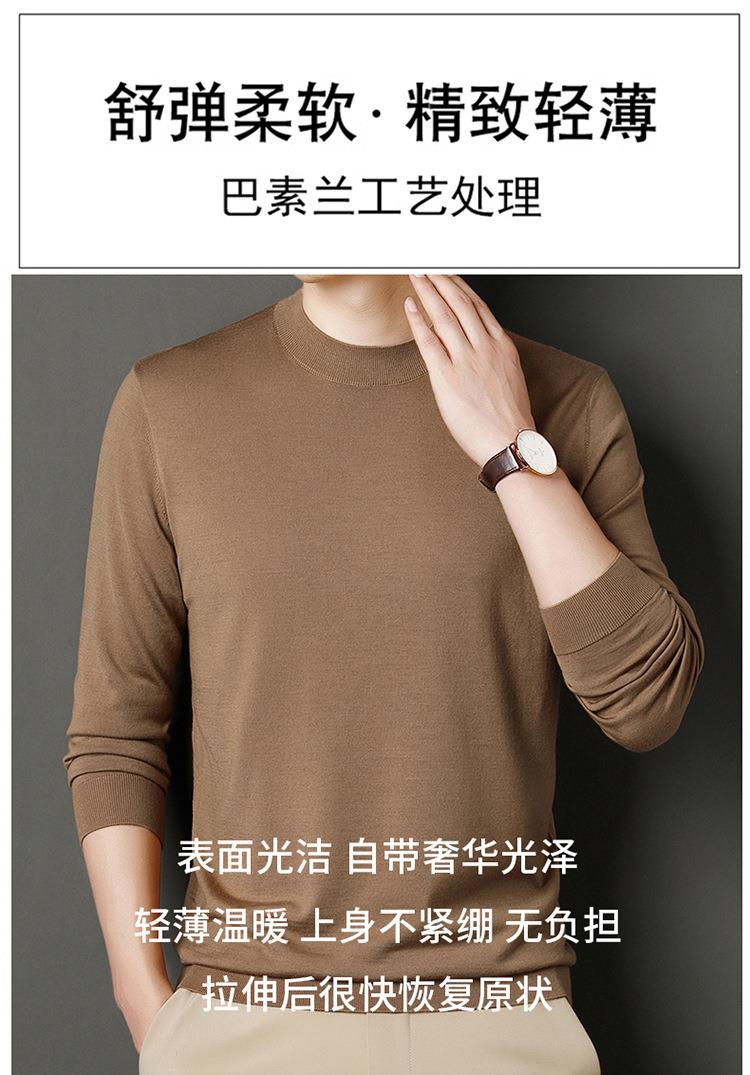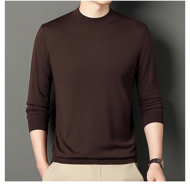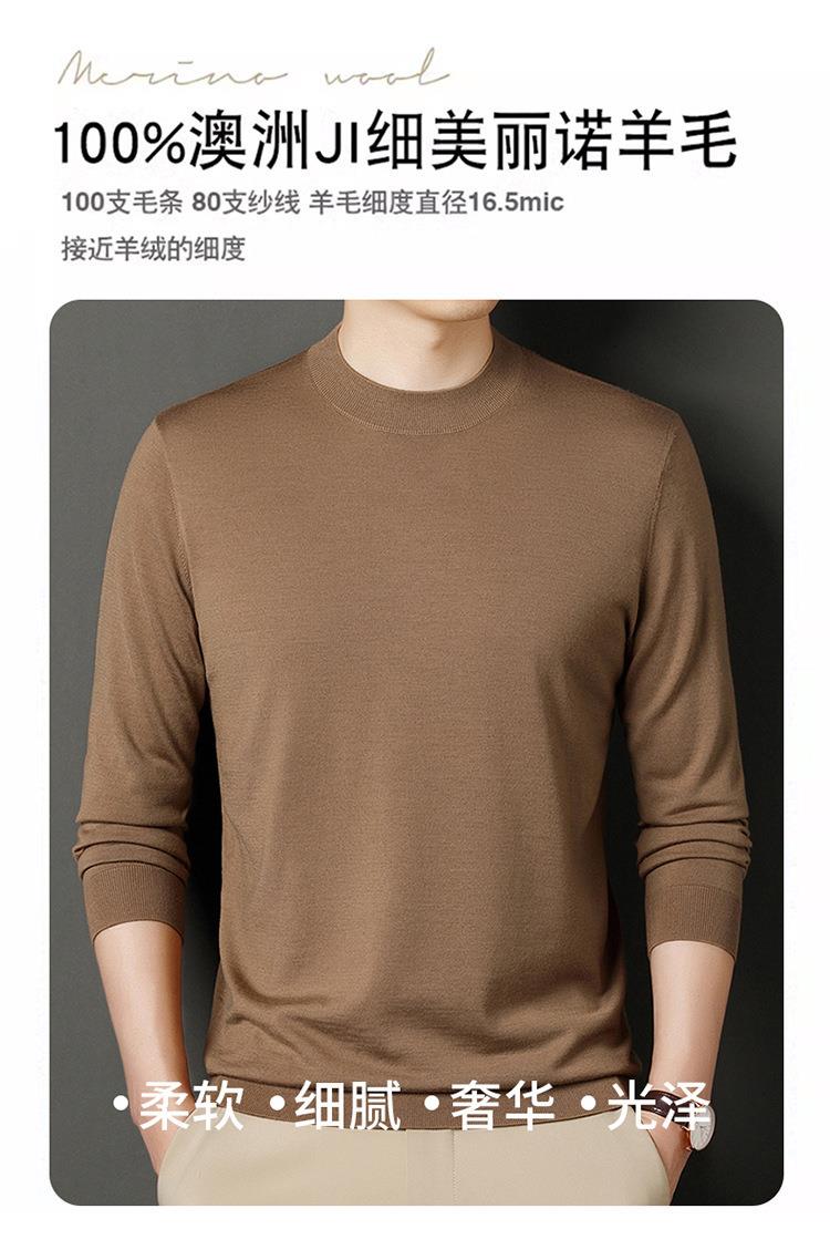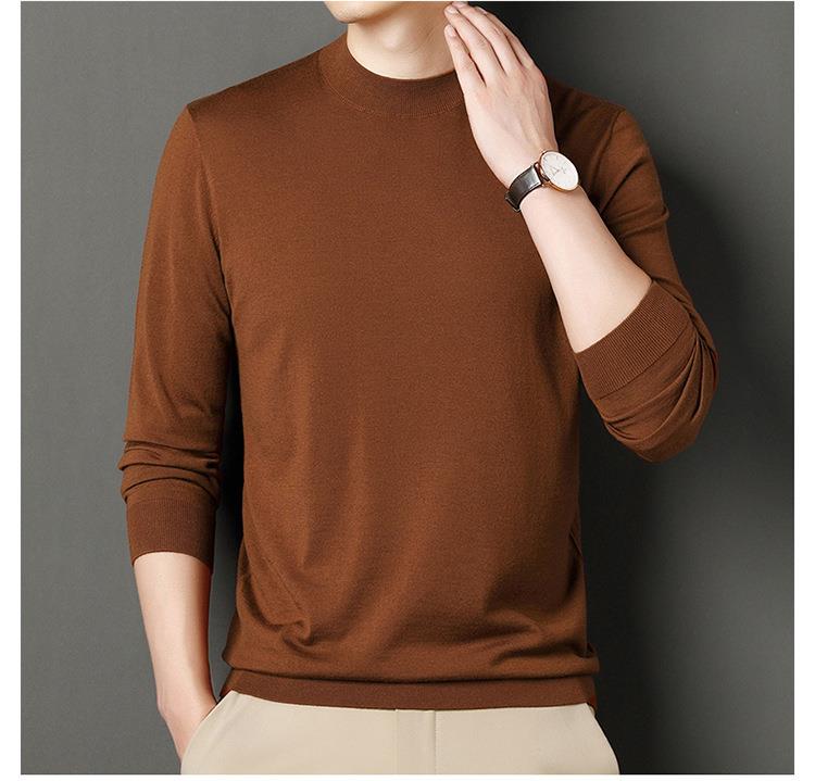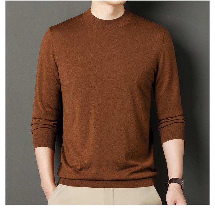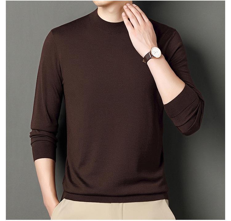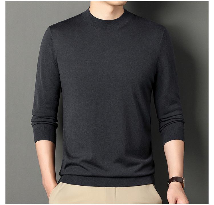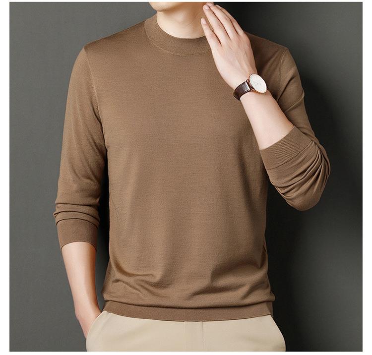 纯羊毛打底衫毛衣男士秋冬季新款半高领简约百搭纯色羊毛衫上衣男