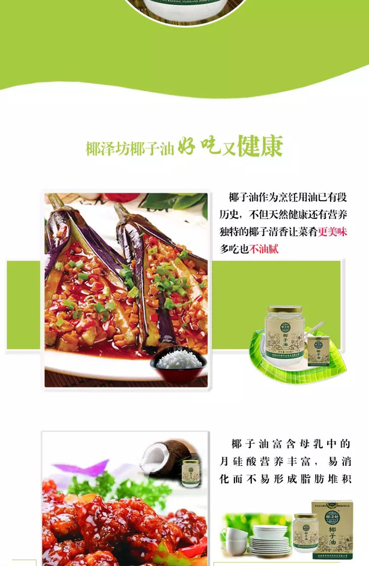 海南椰子油椰泽坊椰子油【400ML】玻璃瓶更安心