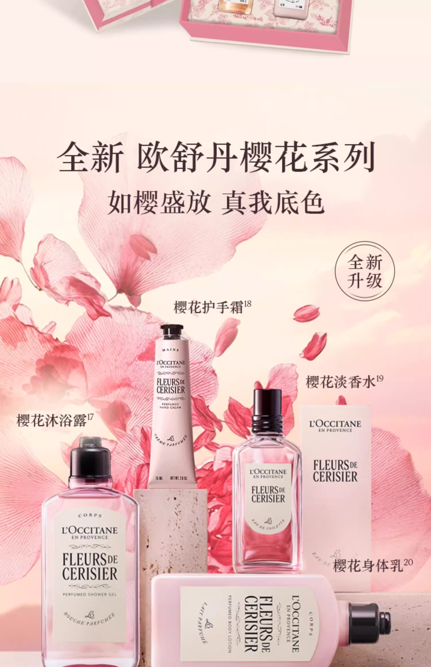 【礼盒礼袋】新版L’OCCITANE欧舒丹全新第二代升级樱花身体乳、沐浴露250ml 全新欧舒丹樱花洗护系列