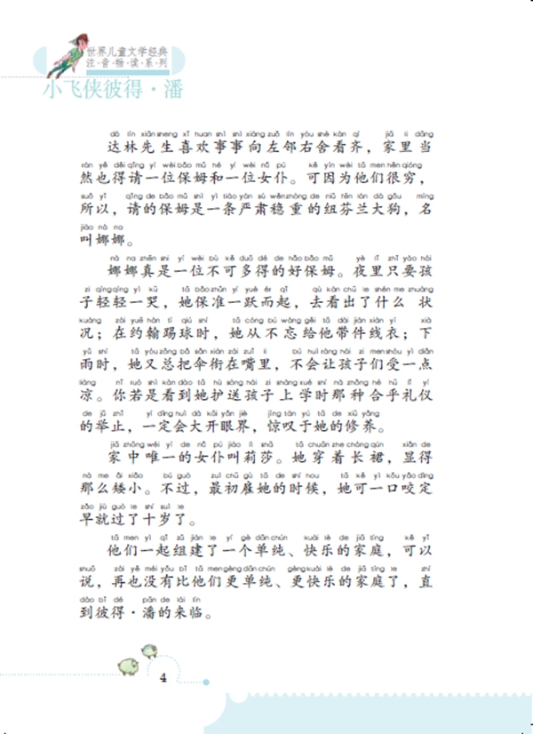 《小飞侠彼得·潘/世界儿童文学经典注音畅读系列/优等生文库》是英国作家詹姆斯·巴里的代表作。作品讲述了温迪和她的两个弟弟被永不长大的男孩彼得·潘吸引,跟随彼得·潘去了神秘的梦幻岛所发生的故事。在那里,他们与美人鱼嬉戏,与海盗斗智,每天都过得特别开心……作为儿童文学人物里家喻户晓的经典人物,不肯长大的彼得·潘象征着自由和独立,象征着永恒的童年和永无止境的探索精神。