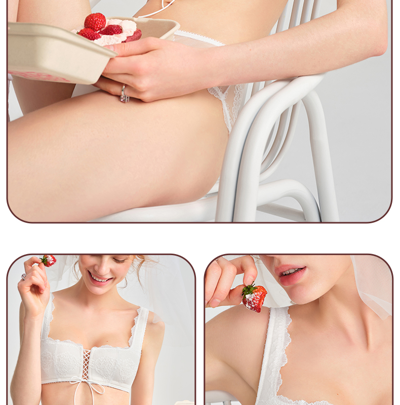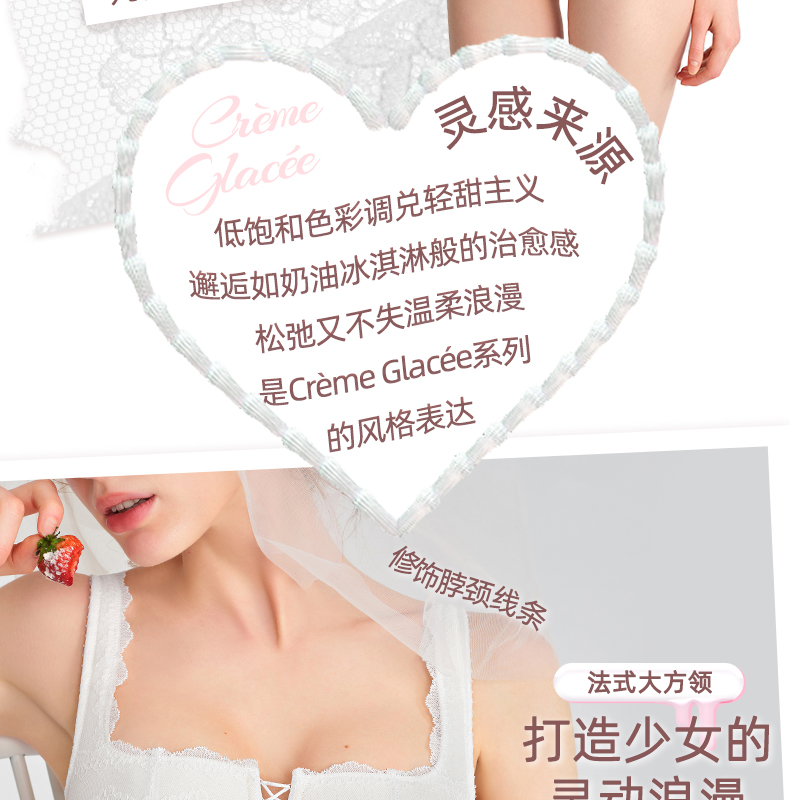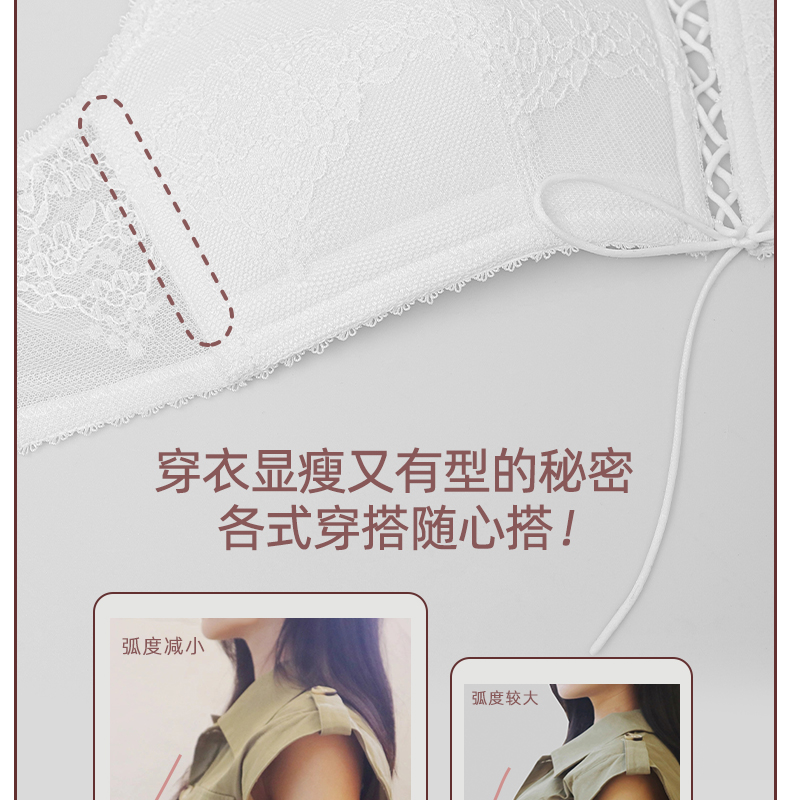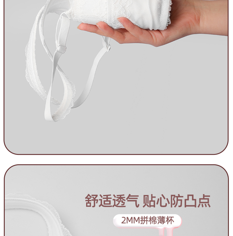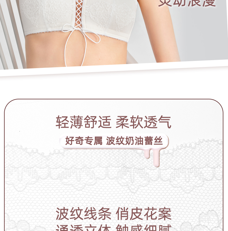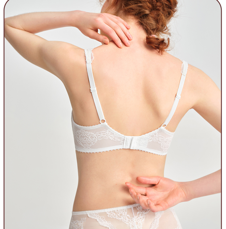 好奇蜜斯法式内衣女美背蕾丝纯欲文胸罩套装女26夏薄白三角杯真丝-奥莎