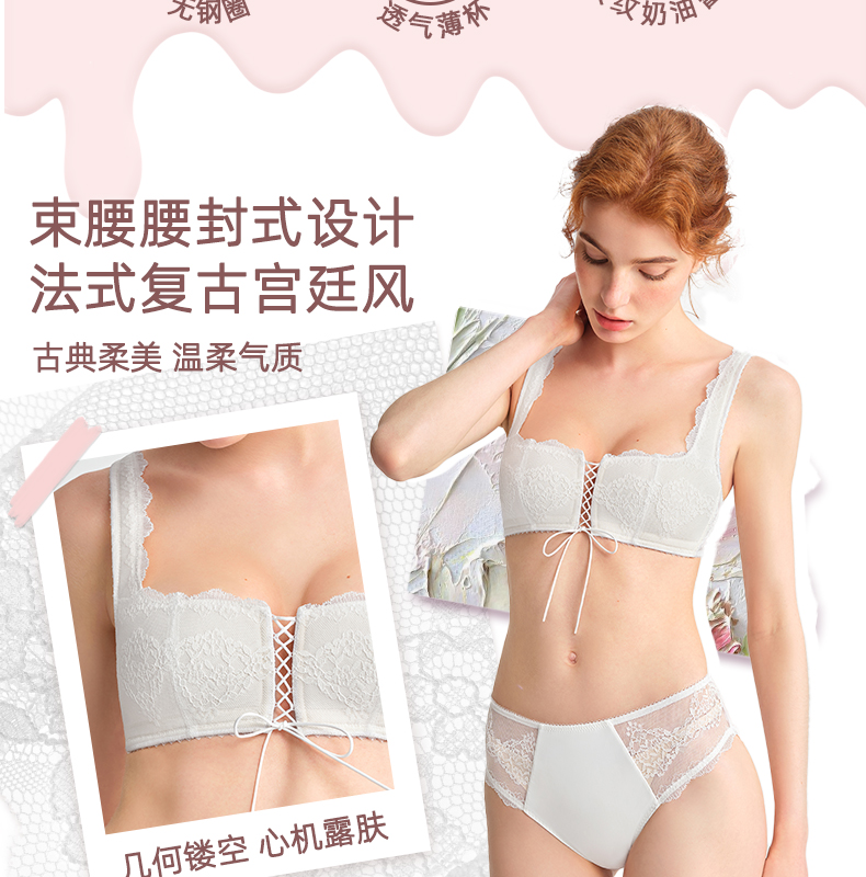 好奇蜜斯法式蕾丝内衣女无钢圈文胸罩套装夏季薄款显胸小新品玛德琳套装