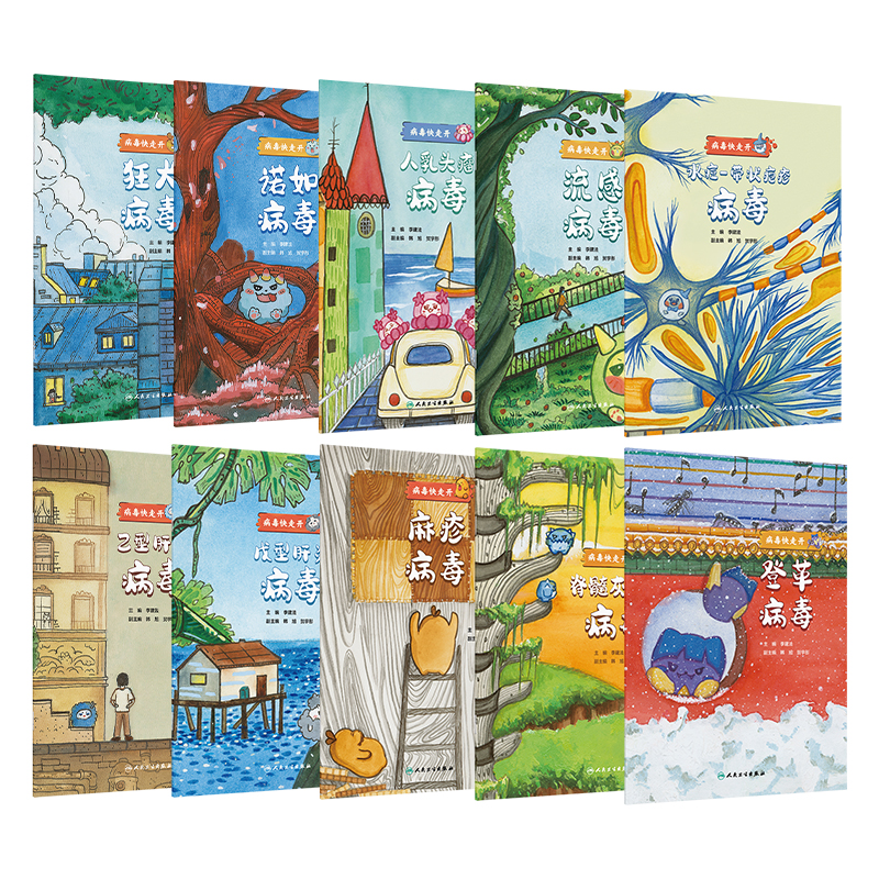 全10册狂犬病毒+诺如病毒+人乳头瘤病毒+流感病毒+水痘带状疱疹病毒+乙型肝炎病毒+戊型肝炎病毒+麻疹病毒+脊髓灰质炎病毒+登革病毒
