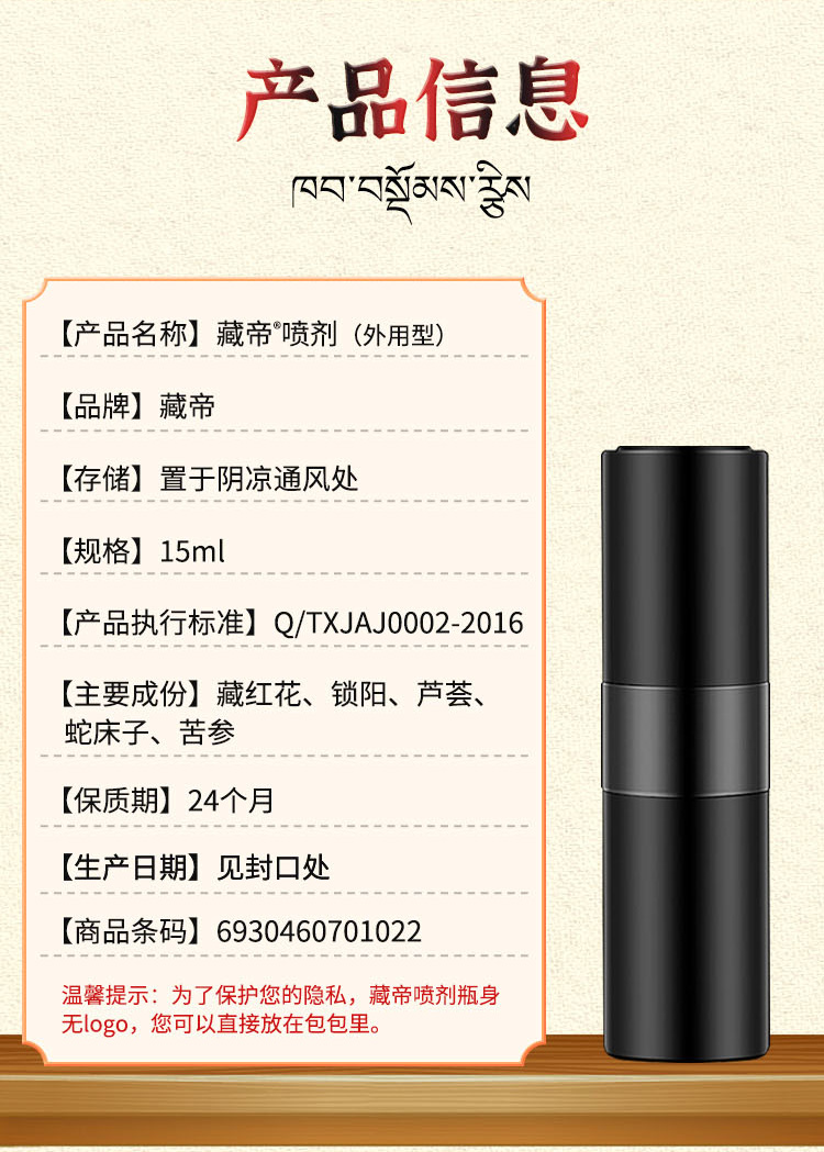 藏帝 延时喷剂植物提取男用喷雾延时伴侣外用湿巾 成人情趣性用品 15ml