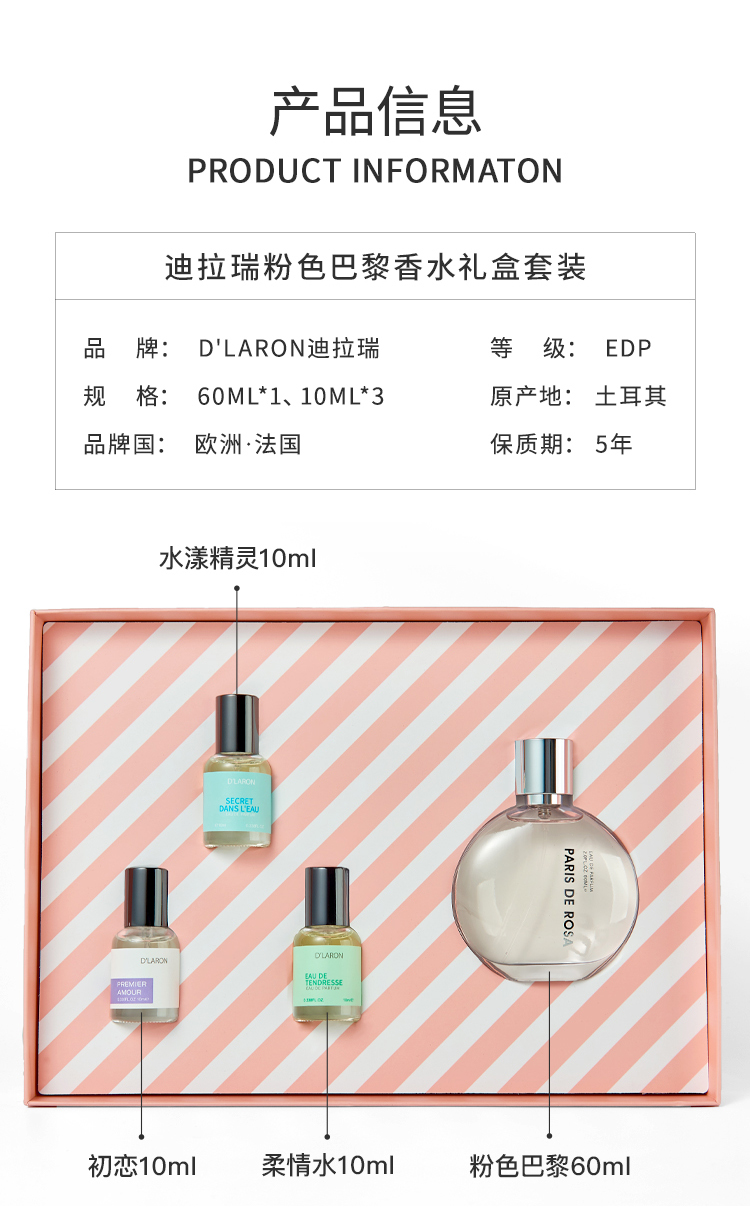 迪拉瑞粉色巴黎香水礼盒 精美高档香氛礼盒送礼送朋友情人节礼物
