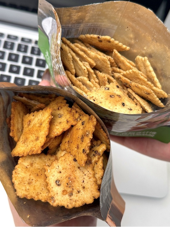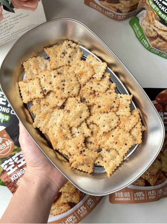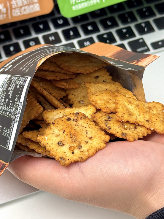 和薯片一样薄脆!但比吃薯片更健康~ 真的太适合我们这种💻上班无聊,又嘴馋😋的打工人了! 下午时分,泡一杯茶🍵搭配空空脆一起吃,真的太幸福了! 大包装的吃不完,但是这种的就刚刚好~~~ 还自带封条可以锁住轻脆感! 超爱这种设计!!不怕饼干受潮!也不怕一次吃不完~ 又解馋又缓解了下午咕噜噜的肚纸~~…… 怪不得深受办公室和宿舍小姐妹的喜欢📦hhh