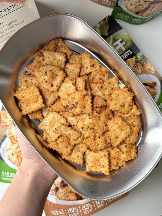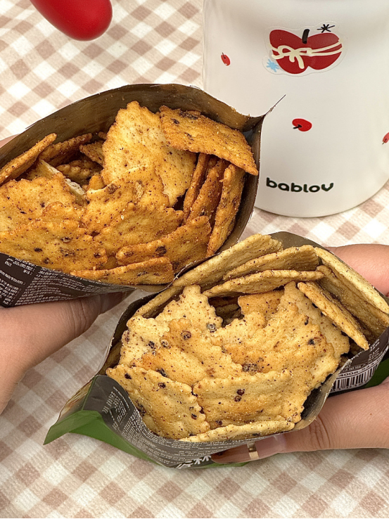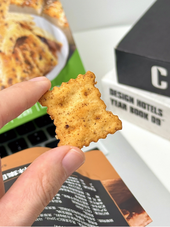 俩个口味都超级好吃,一点都不踩雷~~ 对这种层次丰富的咸口饼干完全没有抵抗力,直接列入回购清单📝!! 年底工作量变得贼大,经常忙的连轴转...... 特别需要把自己从烦闷的工作中抽离出来 下午放松片刻太需要这个小零食了,每一片料都很足,入口嘎嘣脆,吃起来贼解压~ 口感跟薯片一样样的!炫到根本停不下来!