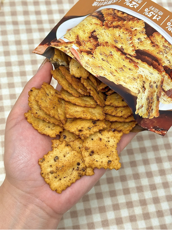 胃不太好的姐妹 吃不了太油的东西.. 可以试试这个哦,是非油炸的✨ 发酵烘烤工艺不仅不油还更健康!! 里面含有膳食纤维好消化!成功代替薯片成为我的健康零食! ⚠️里面富含黑全麦粉、黑藜麦片、奇亚籽等多种粗纤维!也太健康了叭! 太适合加班代餐!了hhh同事说天天吃都不为过了~~