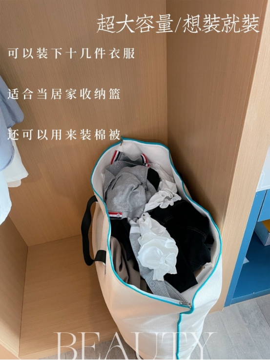 超大容量,凌乱衣物轻松收纳,日常收纳拉链封口使用方便