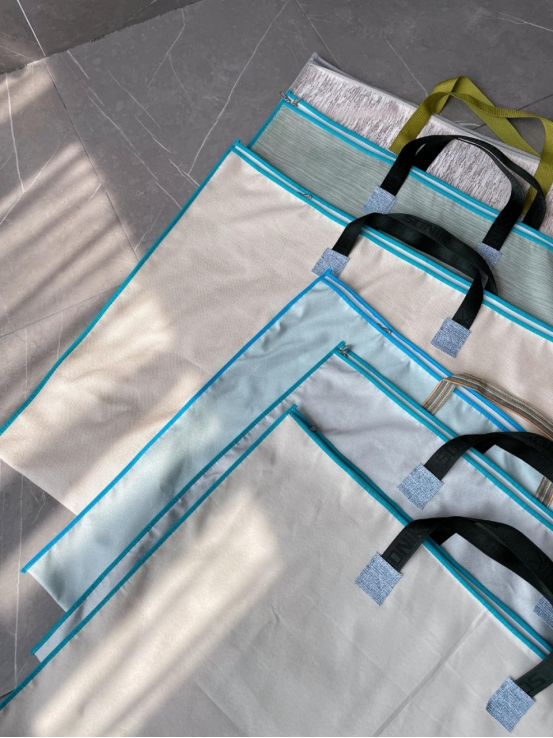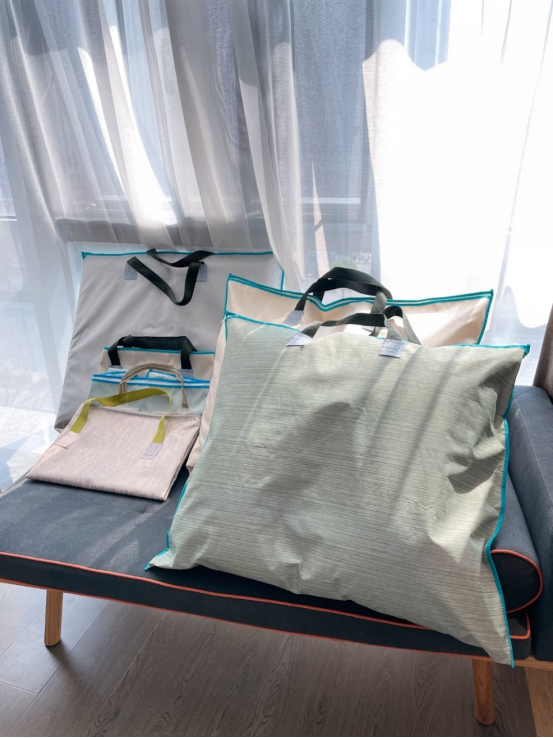 材质是很厚实的防水棉麻,整个袋子很好收纳