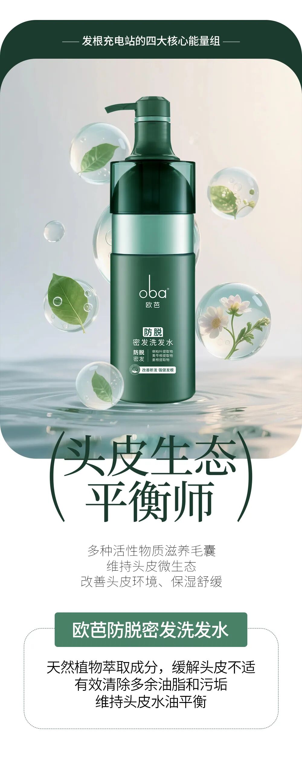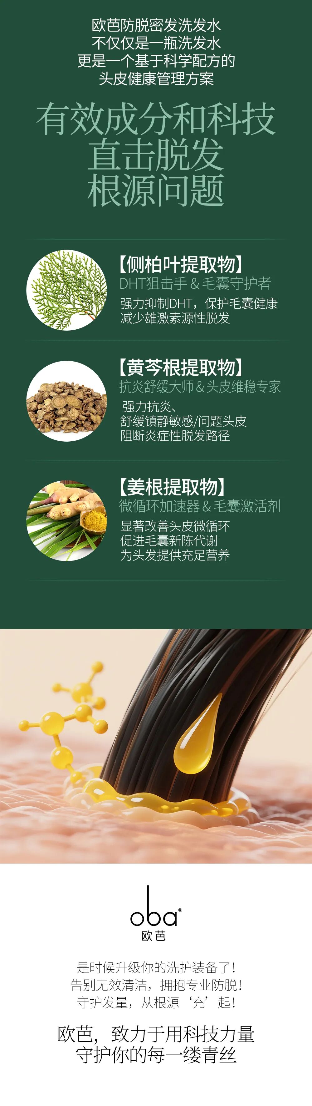 oba欧芭防脱密发洗发水男女士固发护发强健发根改善断发700ml
