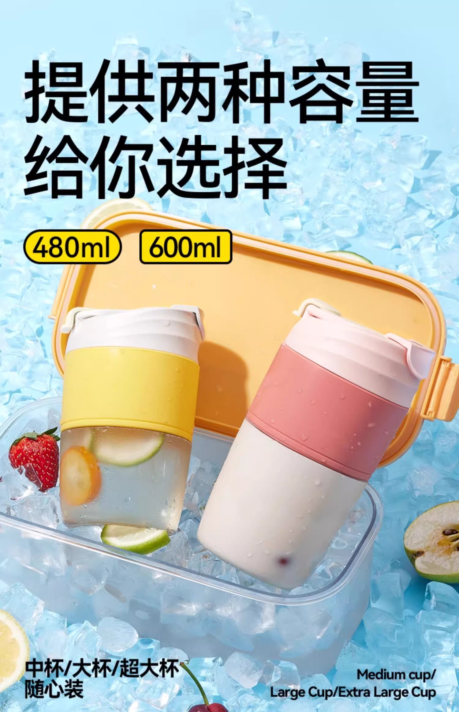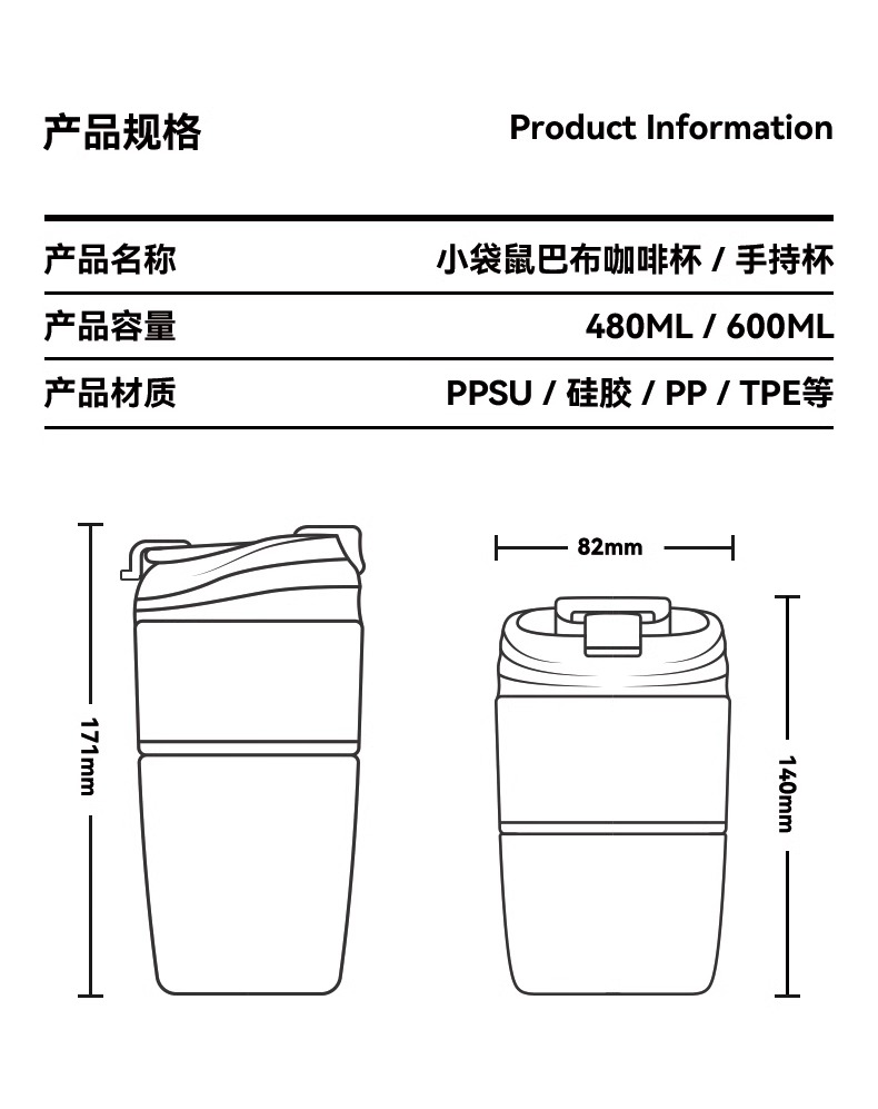 小袋鼠巴布随手咖啡杯PPSU吸管双饮杯