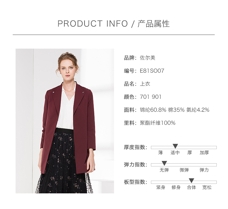 佐尔美年中女装纯色暗花休闲修身小西装短装外套上衣E61SO13