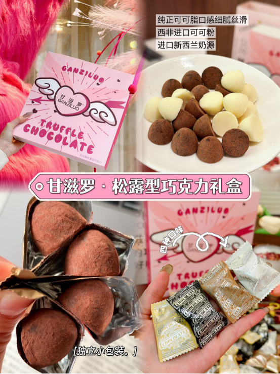甘滋罗:非常适合送人! 独立包装每一颗都可口心动 喜欢吃巧克力的一定不要错过 情人节不知道送什么的就选它 送这一套礼盒出手 心意满满当当 将喜悦与幸福通通打包。仪式感一整个拉满!
