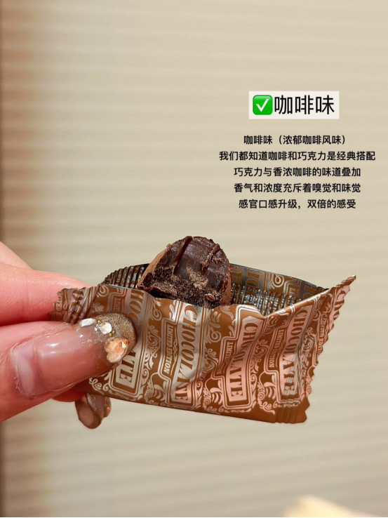 ✅咖啡味 咖啡味我们都知道咖啡和巧克力是经典搭配 巧克力与香浓咖啡的味道叠加,香气和浓度充斥着嗅觉和味觉感官口感升级,双倍的感受