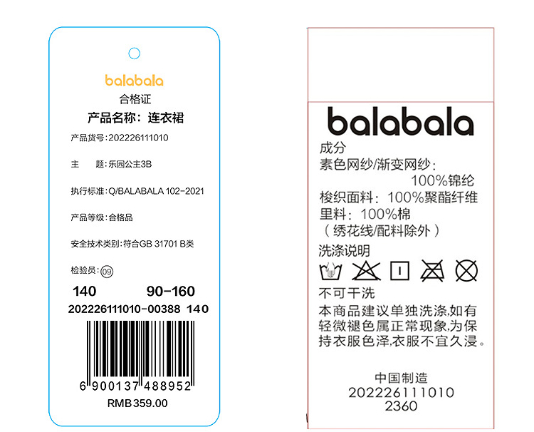 【商场同款】巴拉巴拉女童裙子儿童连衣裙2026新款夏公主网纱裙子