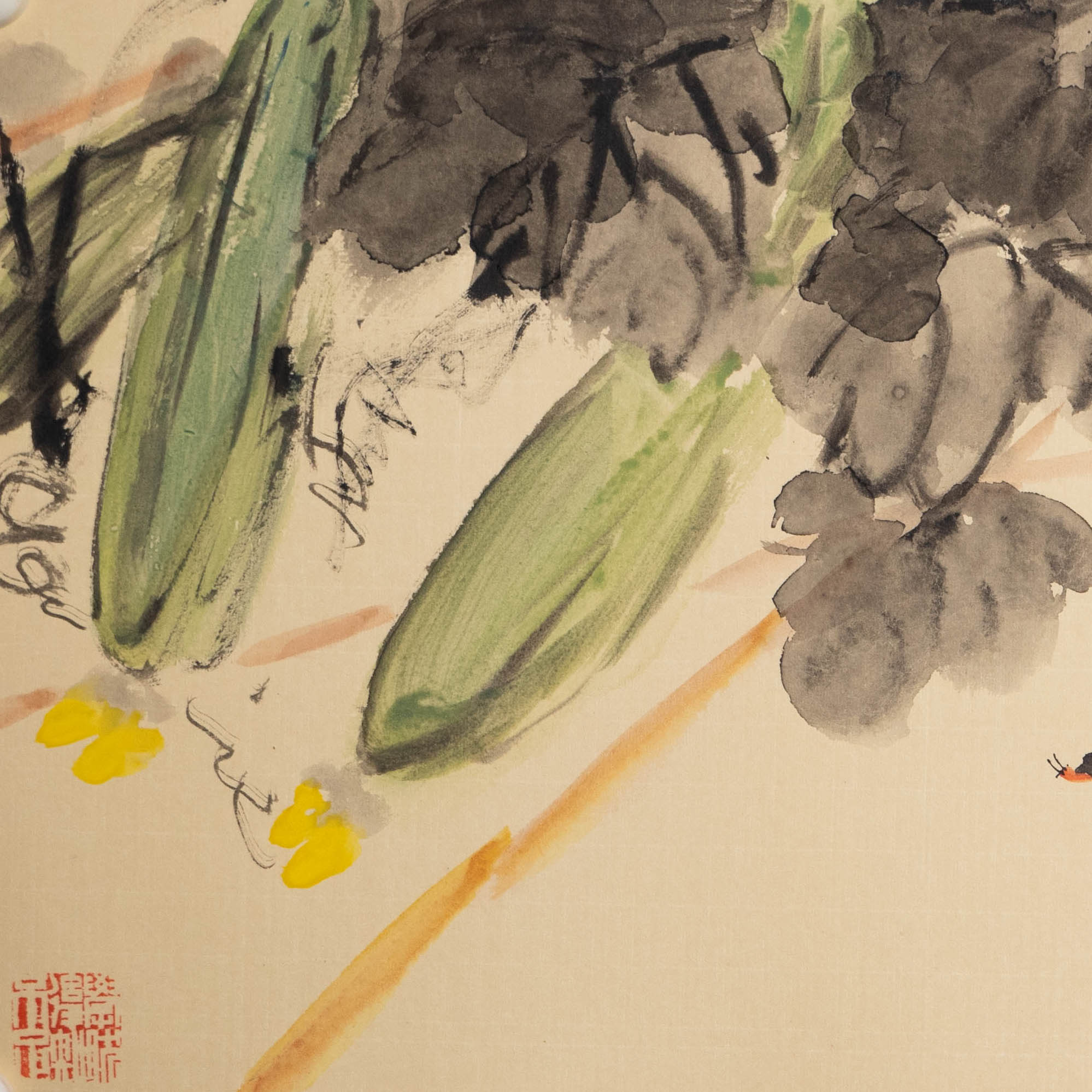 姚涯屏《田家占气候 共说此丰年》国画33.5CM×66CM 约2平尺手绘纸本宣纸作品(八哥、丝瓜)【原作编号GH0412】