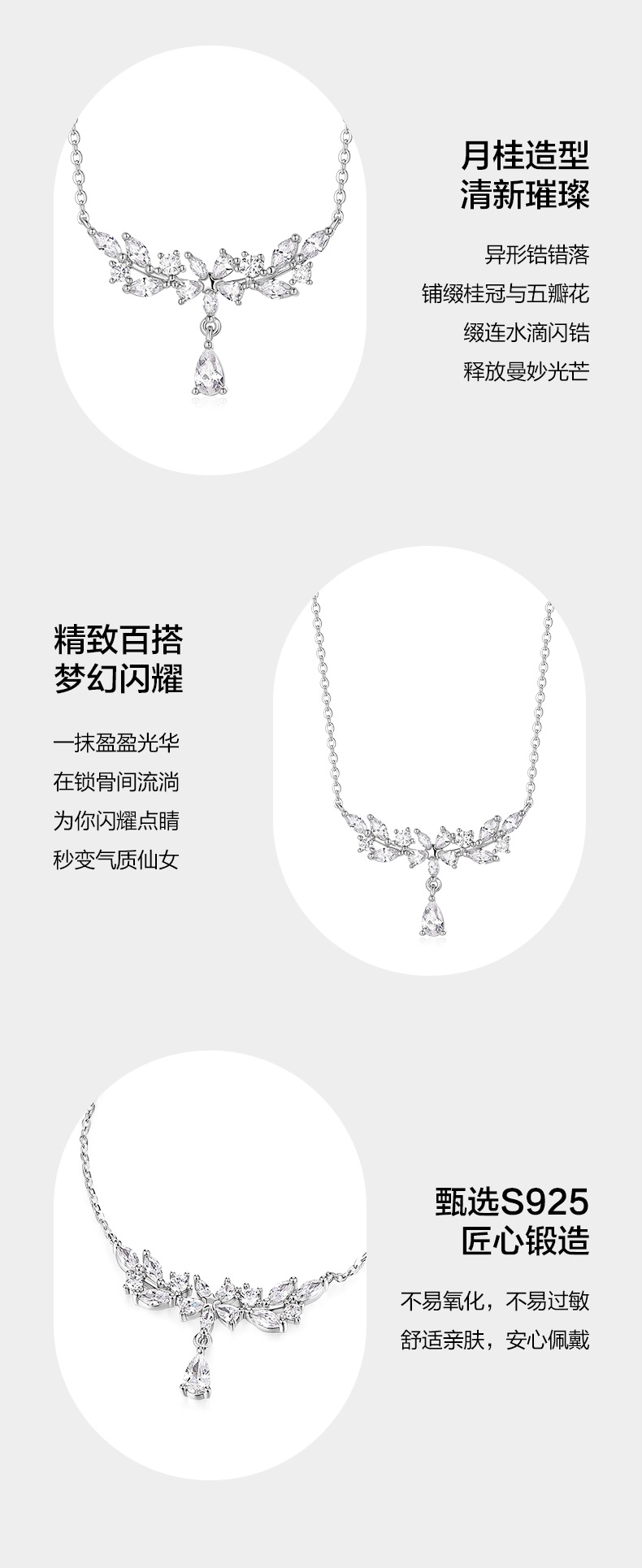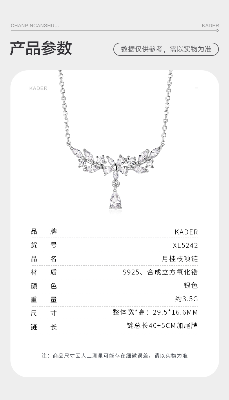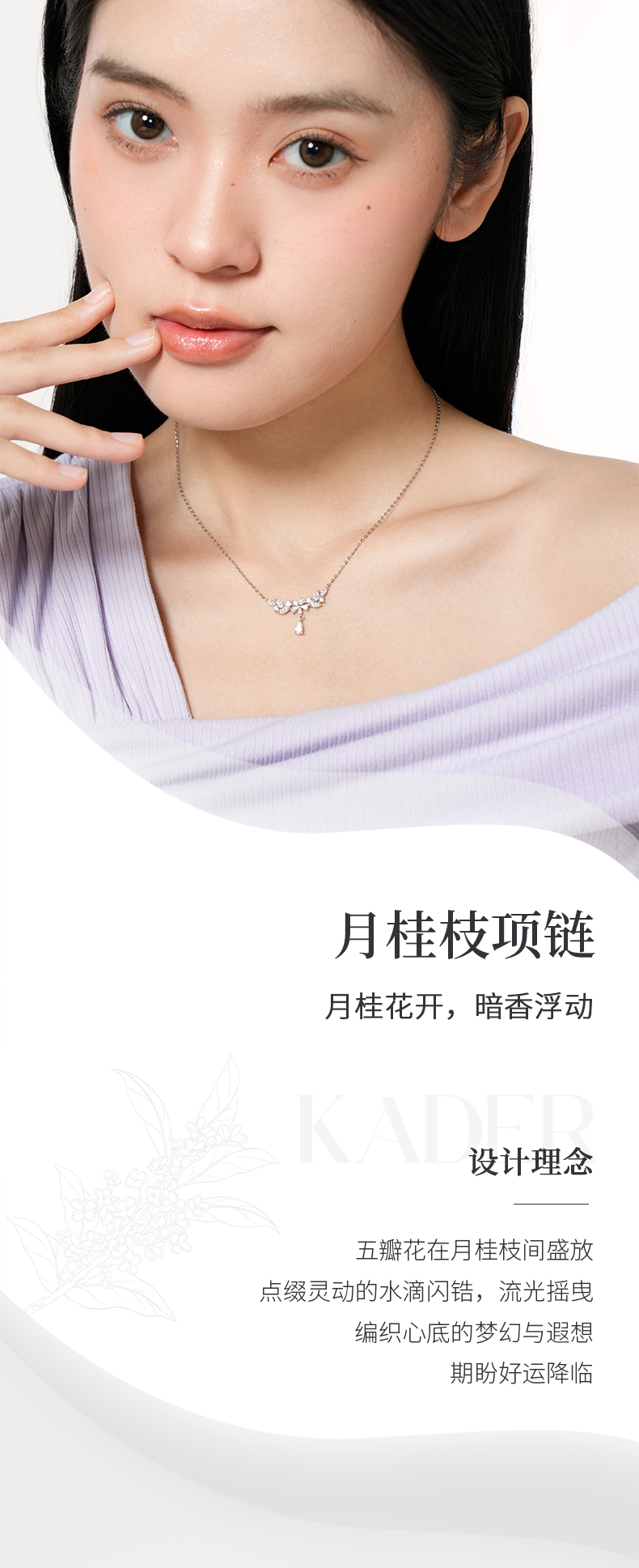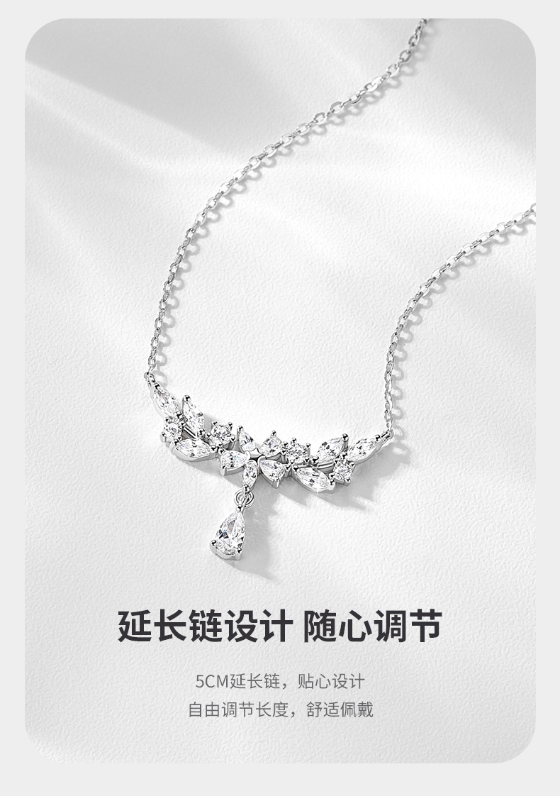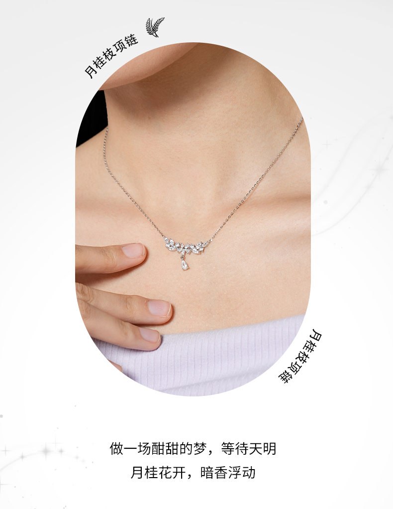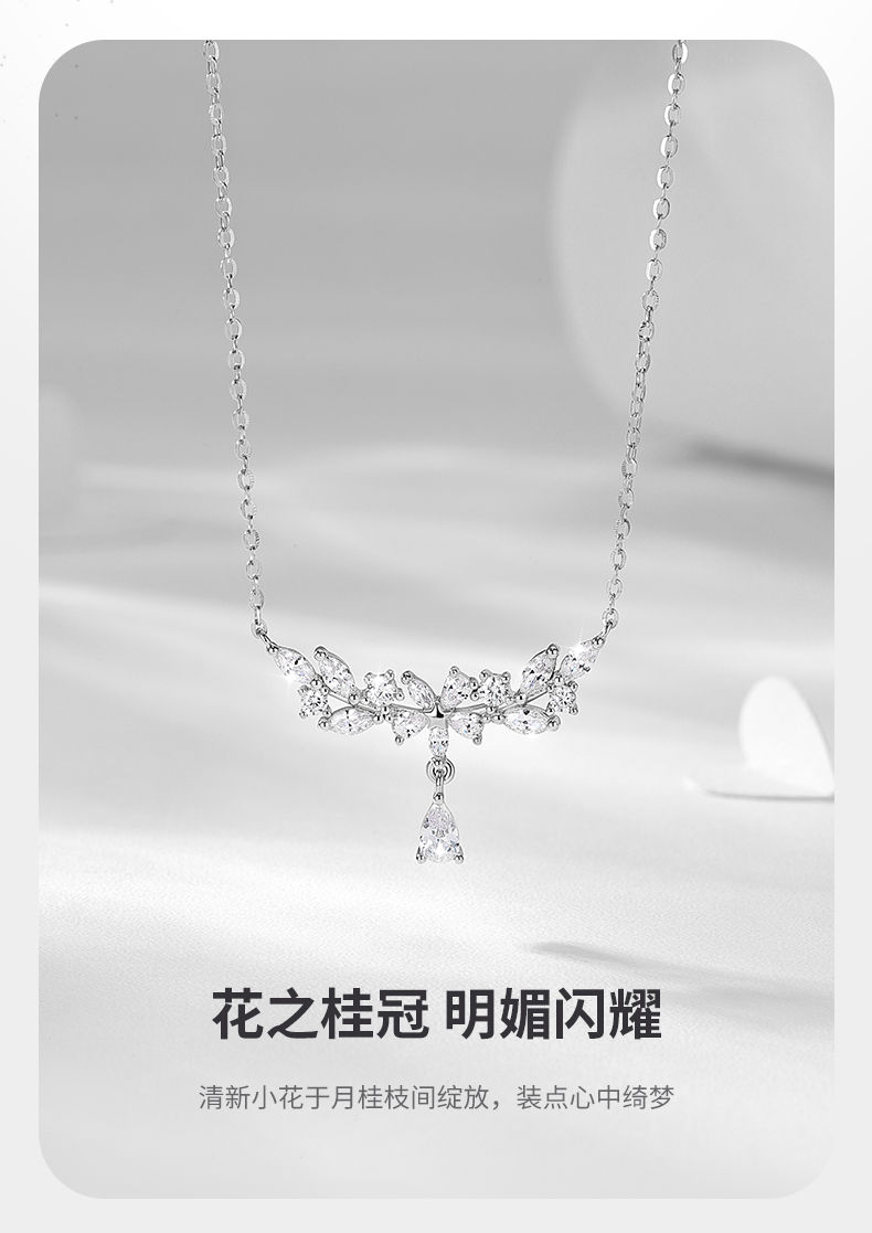 卡蒂罗/KADER 月桂枝项链 轻奢高级闪耀紫藤花系列 穗穗平安麦穗水滴设计镶闪锆锁骨链可调节 女朋友周年礼盒