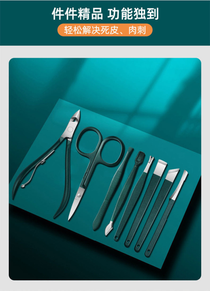 指甲剪墨绿色18件套指甲钳套装修甲工具指甲刀套装
