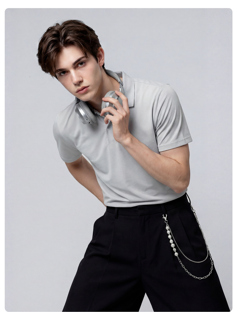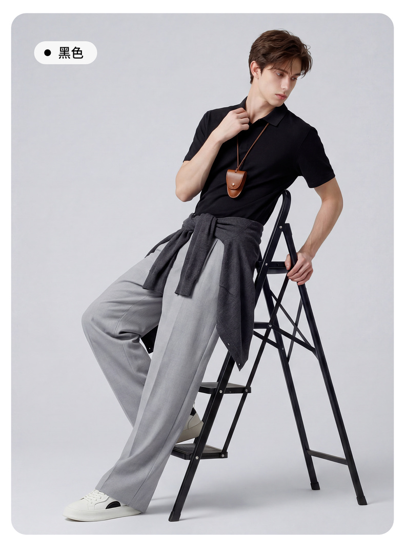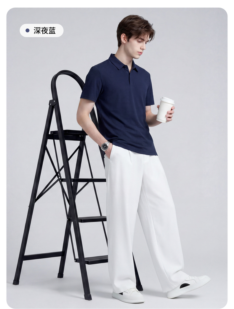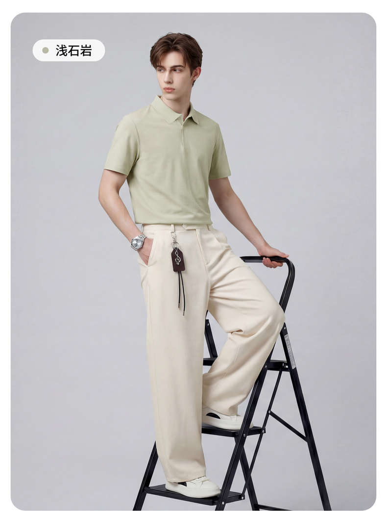 【含桑蚕丝】圣得西男50S纱线针织POLO衫2025秋季款经典翻领上衣
