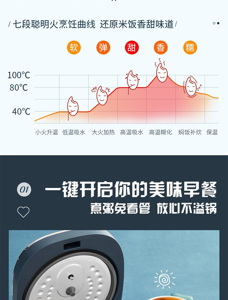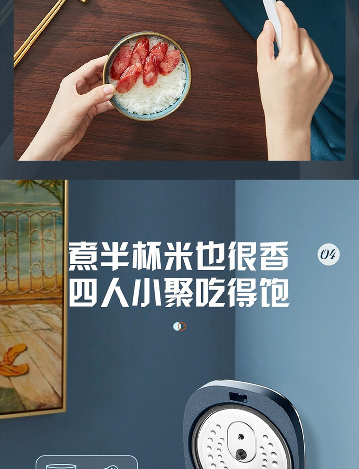 苏泊尔(509945)(SUPOR)迷你陶晶电饭煲SF20FC45小容量家1-2-3人2L用宿舍单人饭锅小型智能电饭煲深海蓝
