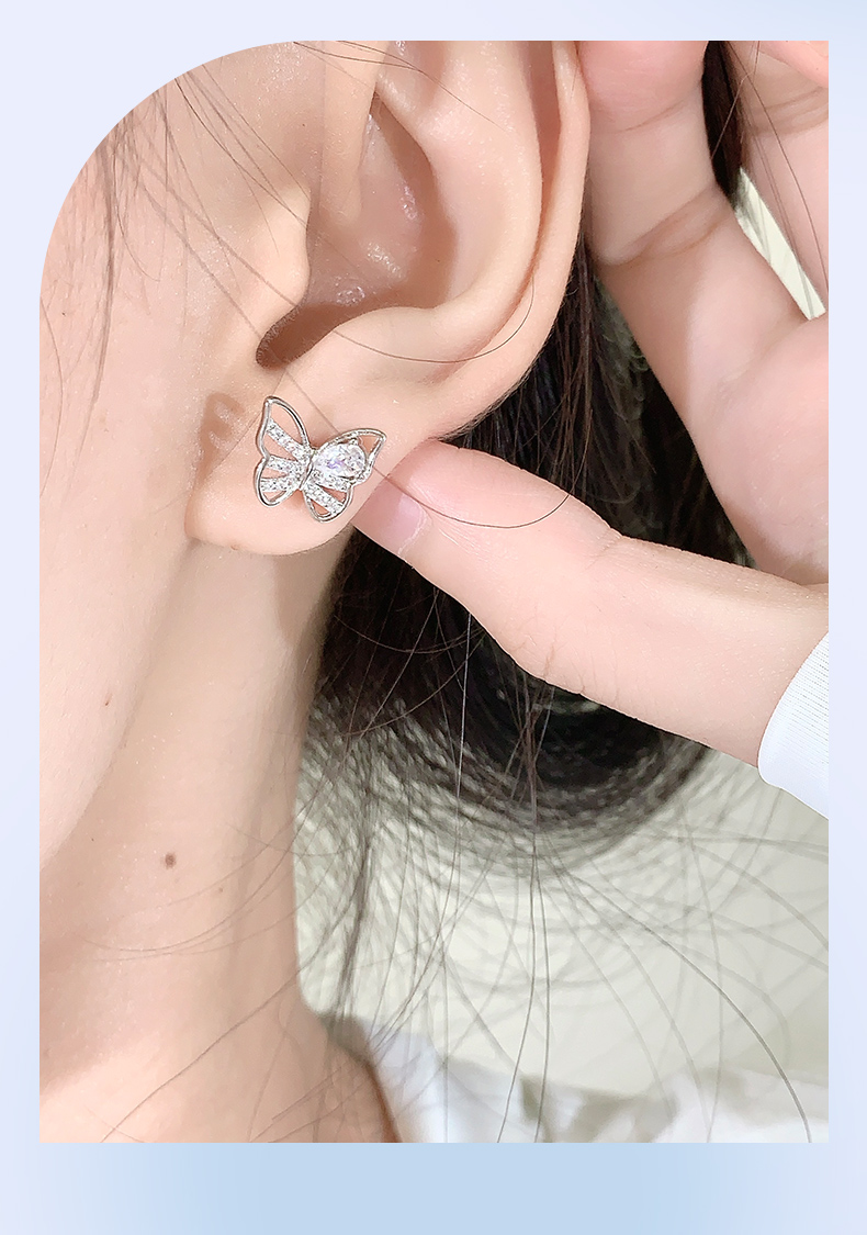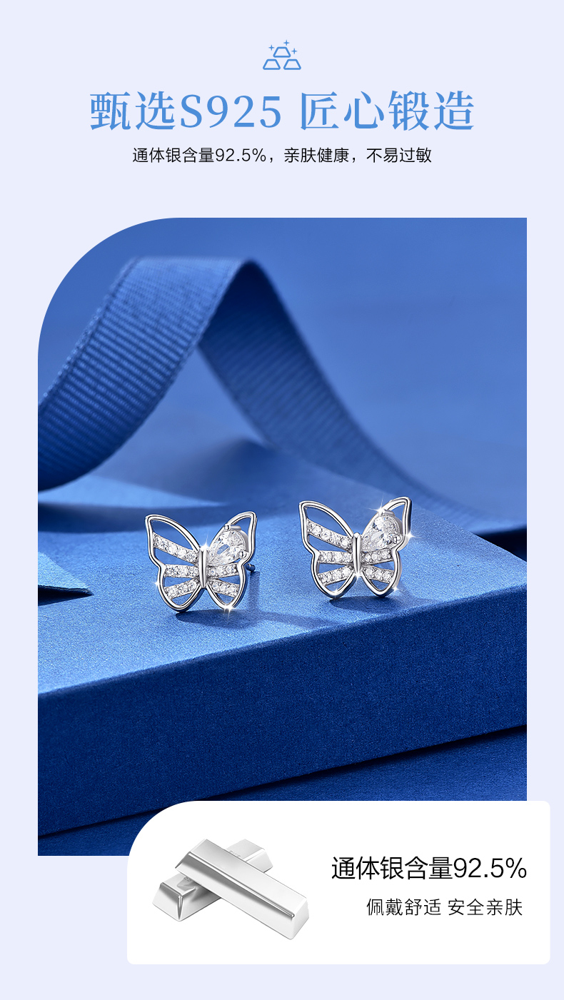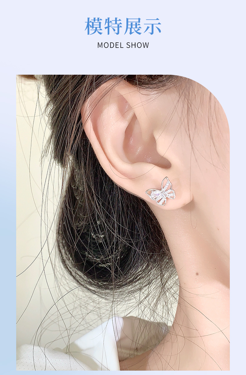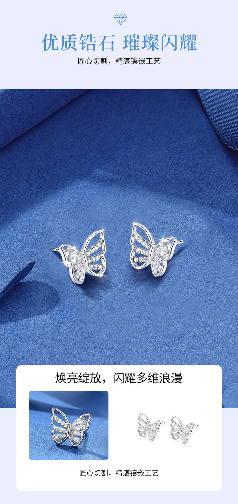 卡蒂罗/KADER 仙踪蝶影耳钉 梦幻蝴蝶造型满镶宝石闪闪蝶舞设计养耳洞耳饰 睡觉免摘璀璨闪耀配饰 925银
