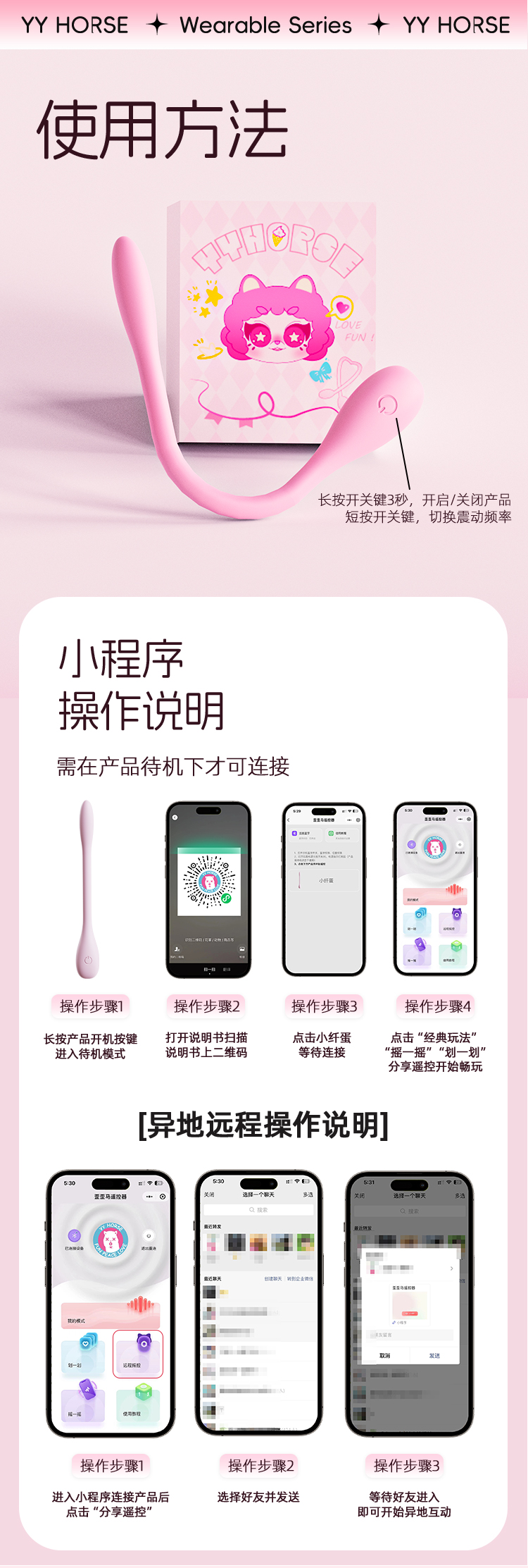 YY HORSE/歪歪马小纤蛋新手入体情侣远程遥控穿戴低分贝强震跳蛋