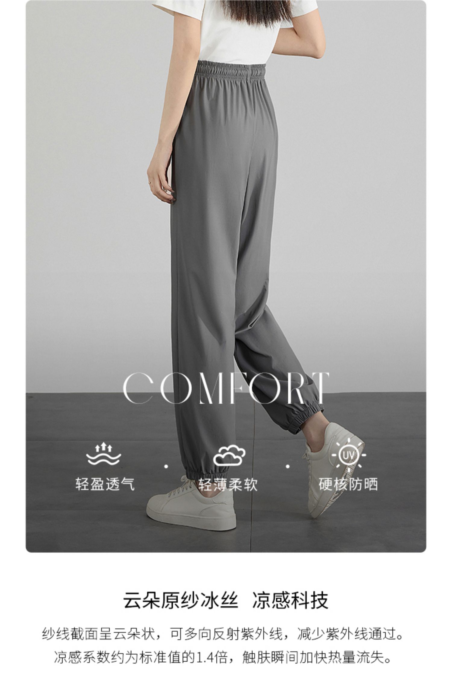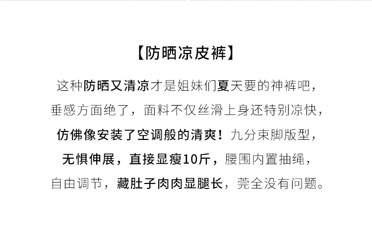 【五折购】熙世界凉皮防晒裤冰丝薄款夏季速干九分灯笼卫裤运动束脚休闲裤