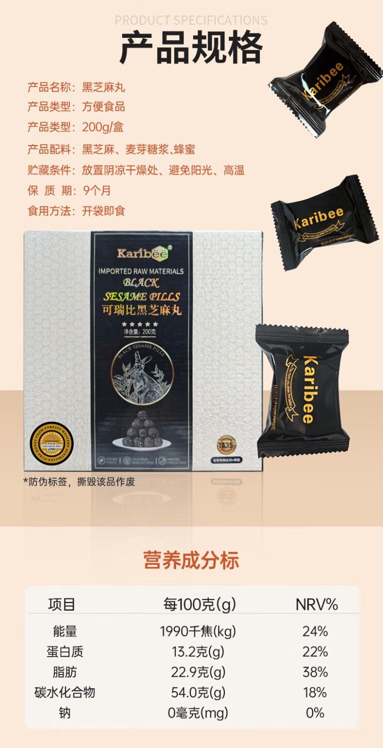 Karibee可瑞比比TA35+蜂蜜黑芝麻丸 200g*2盒