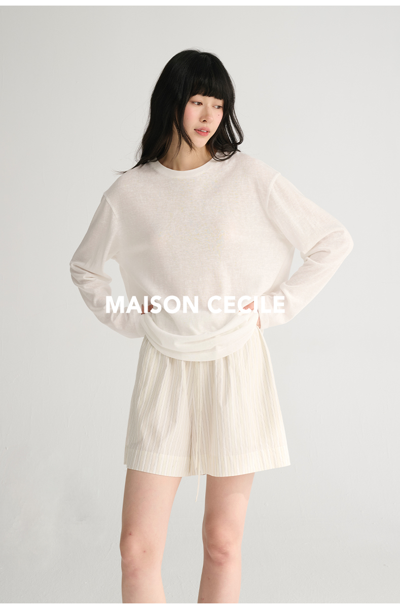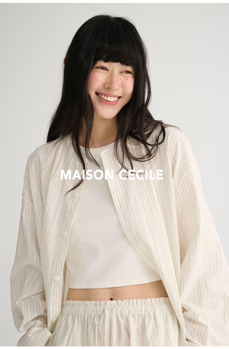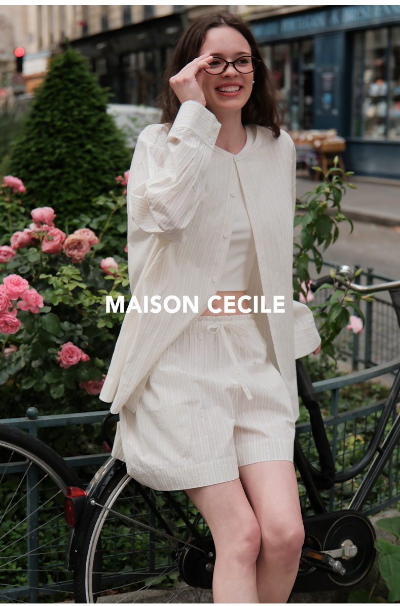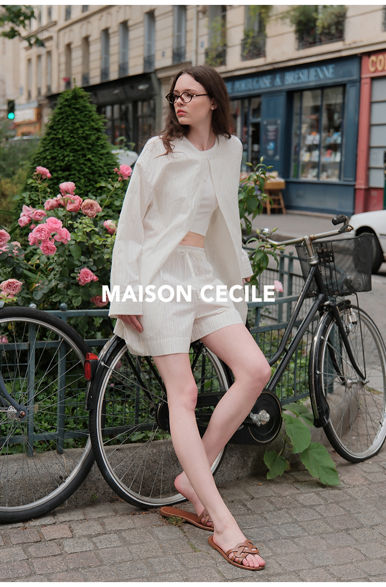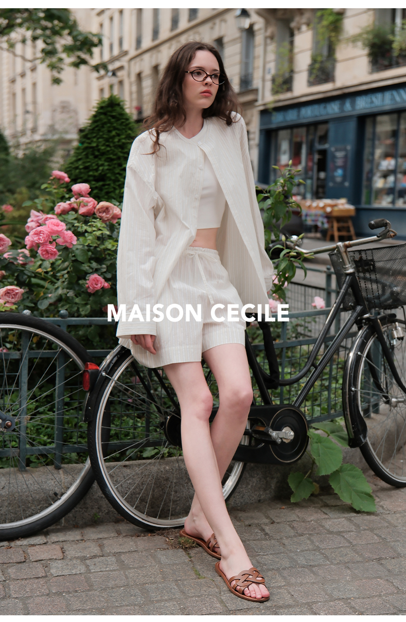 MAISON CECILE 松弛立体条纹肌理感圆领廓形衬衫/松紧腰短裤/长裤