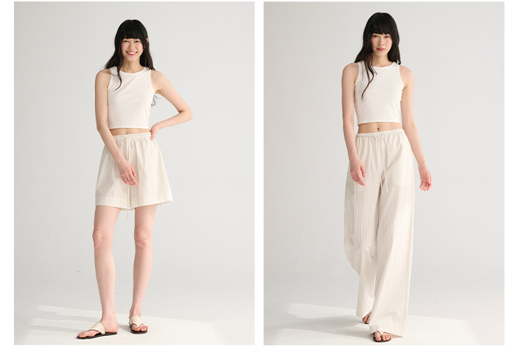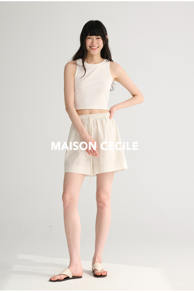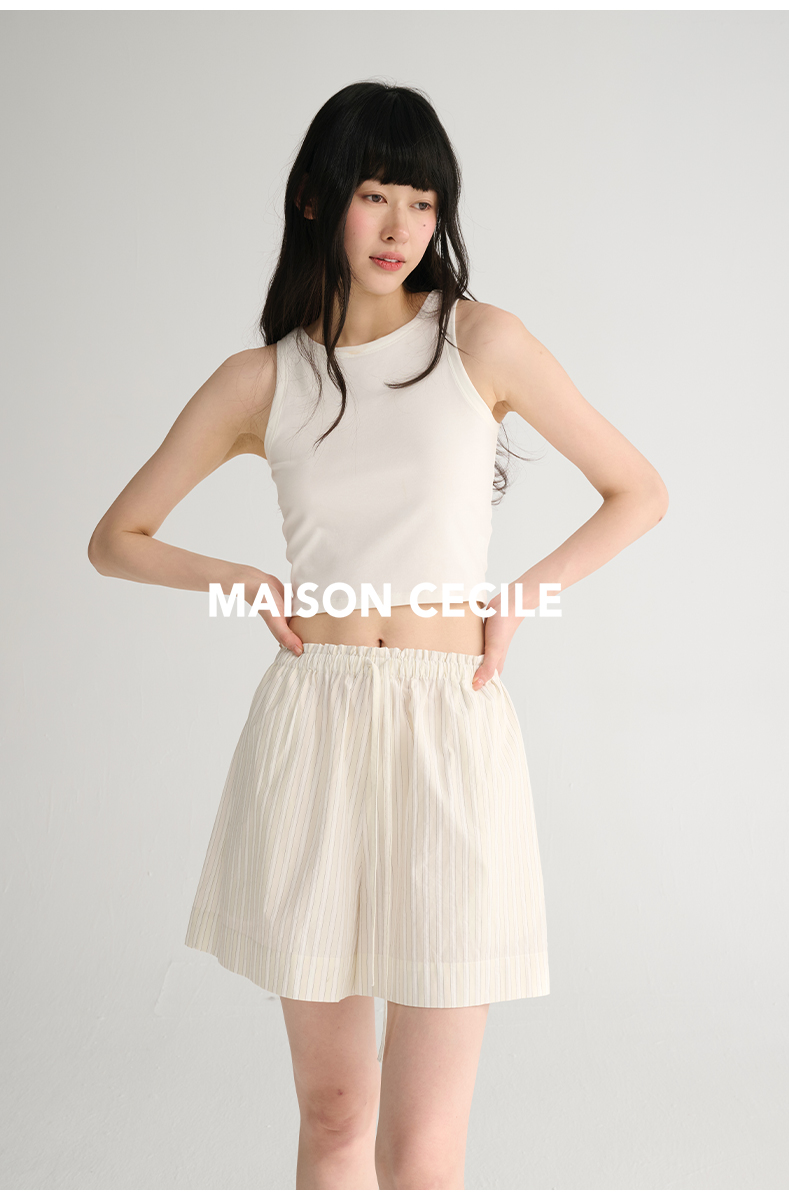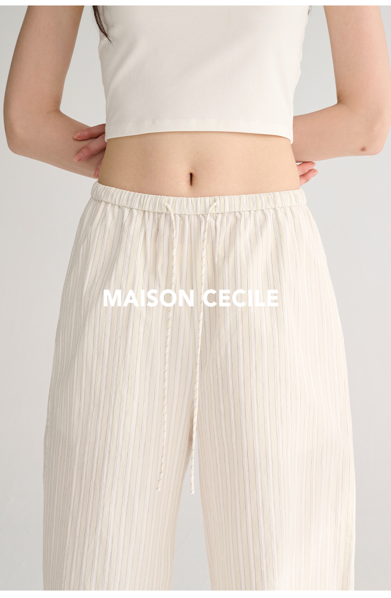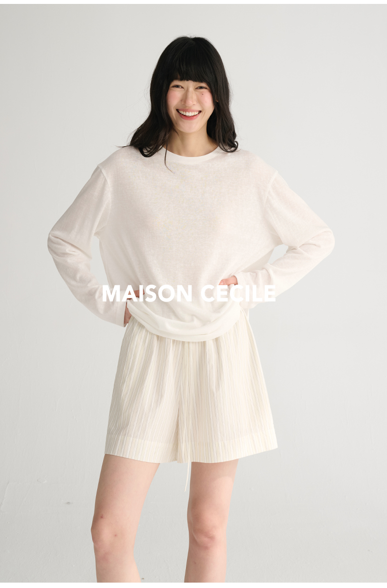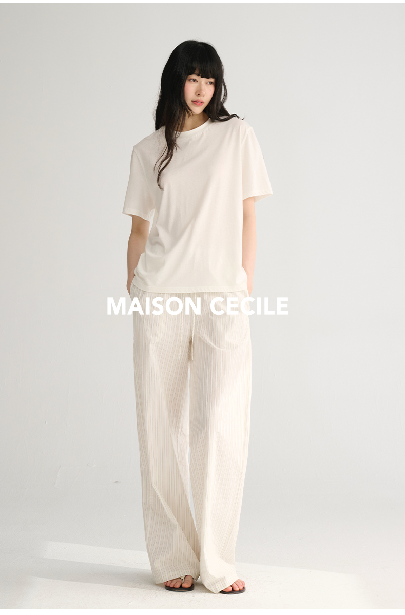 MAISON CECILE 松弛立体条纹肌理感圆领廓形衬衫/松紧腰短裤/长裤