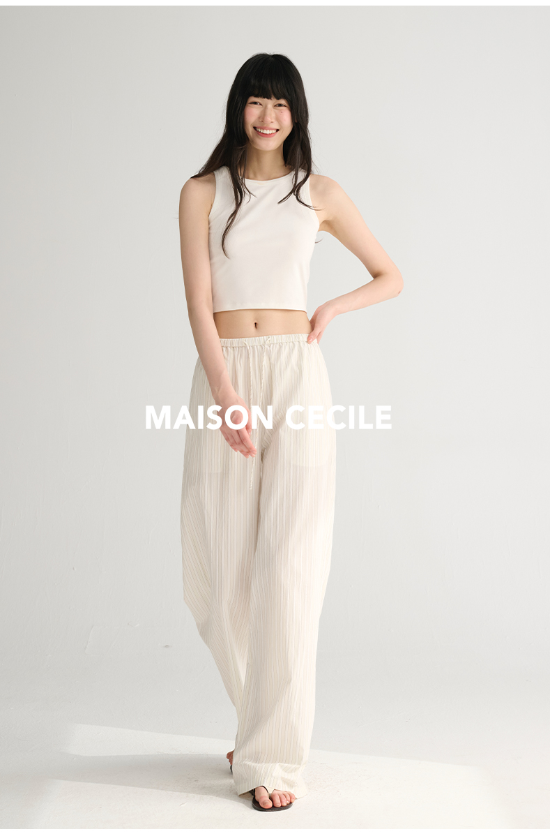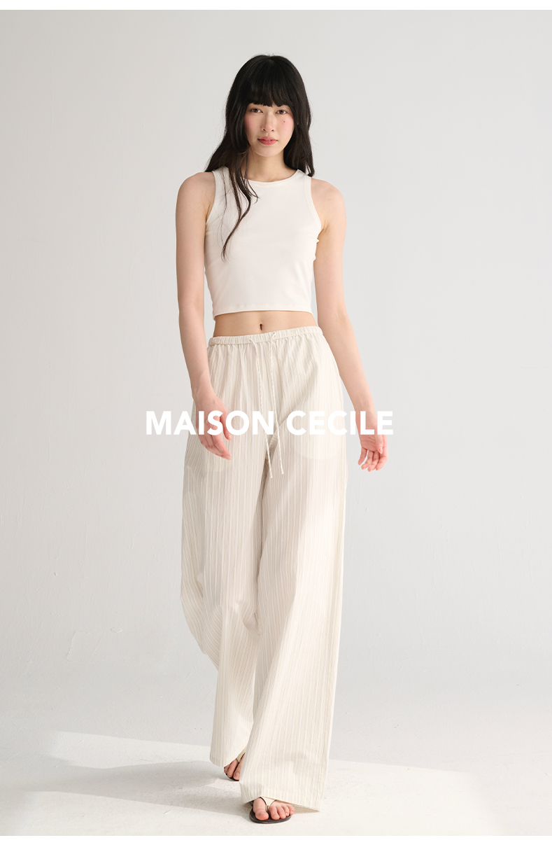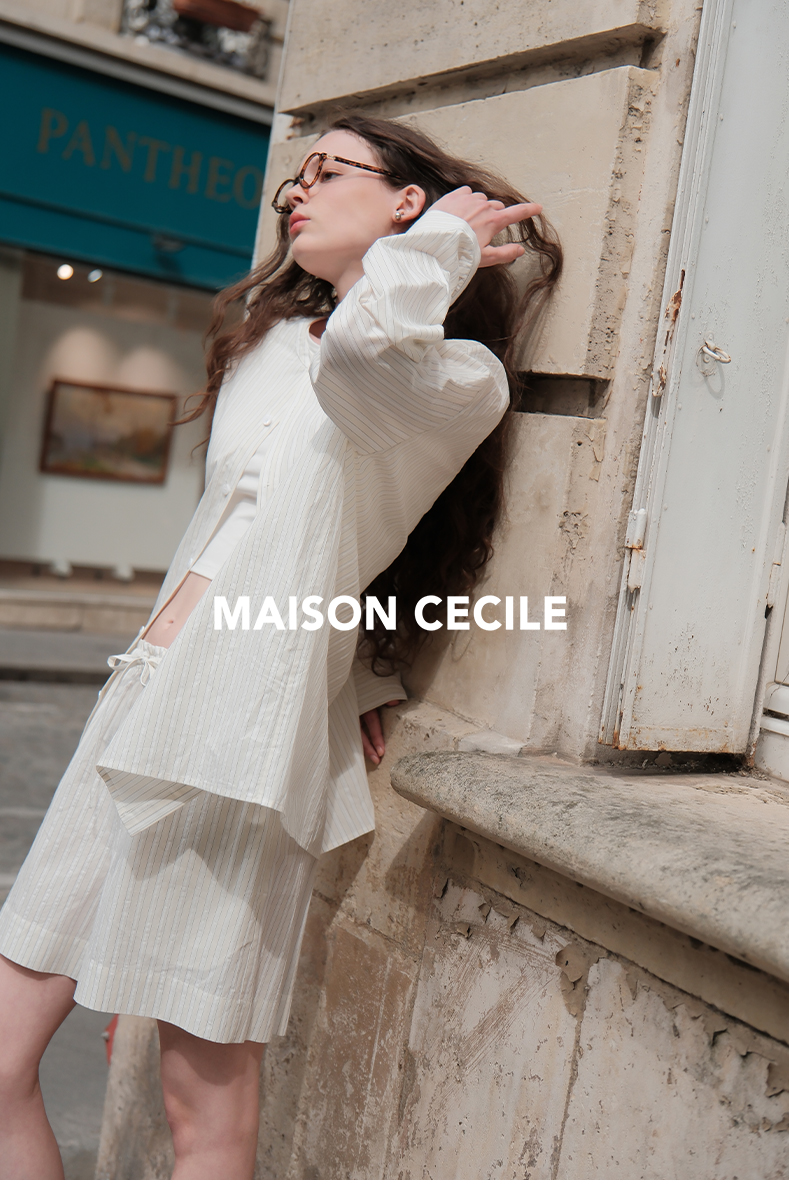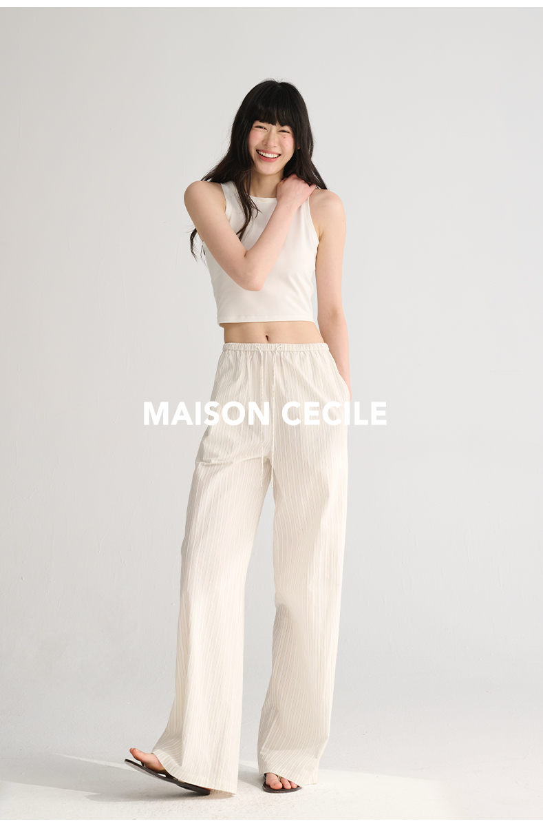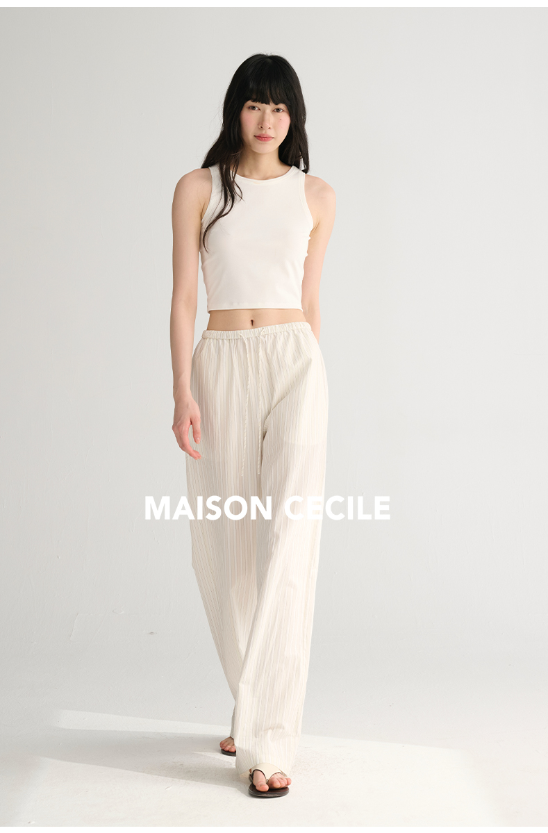 MAISON CECILE 松弛立体条纹肌理感圆领廓形衬衫/松紧腰短裤/长裤