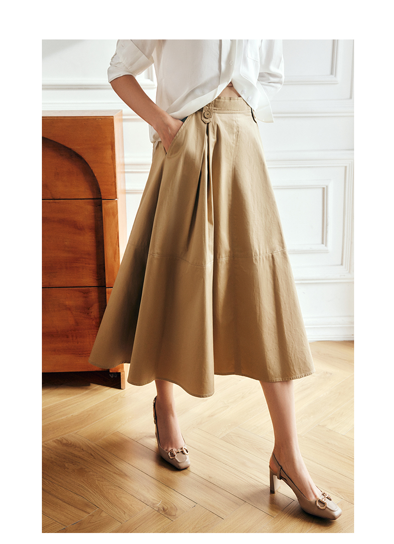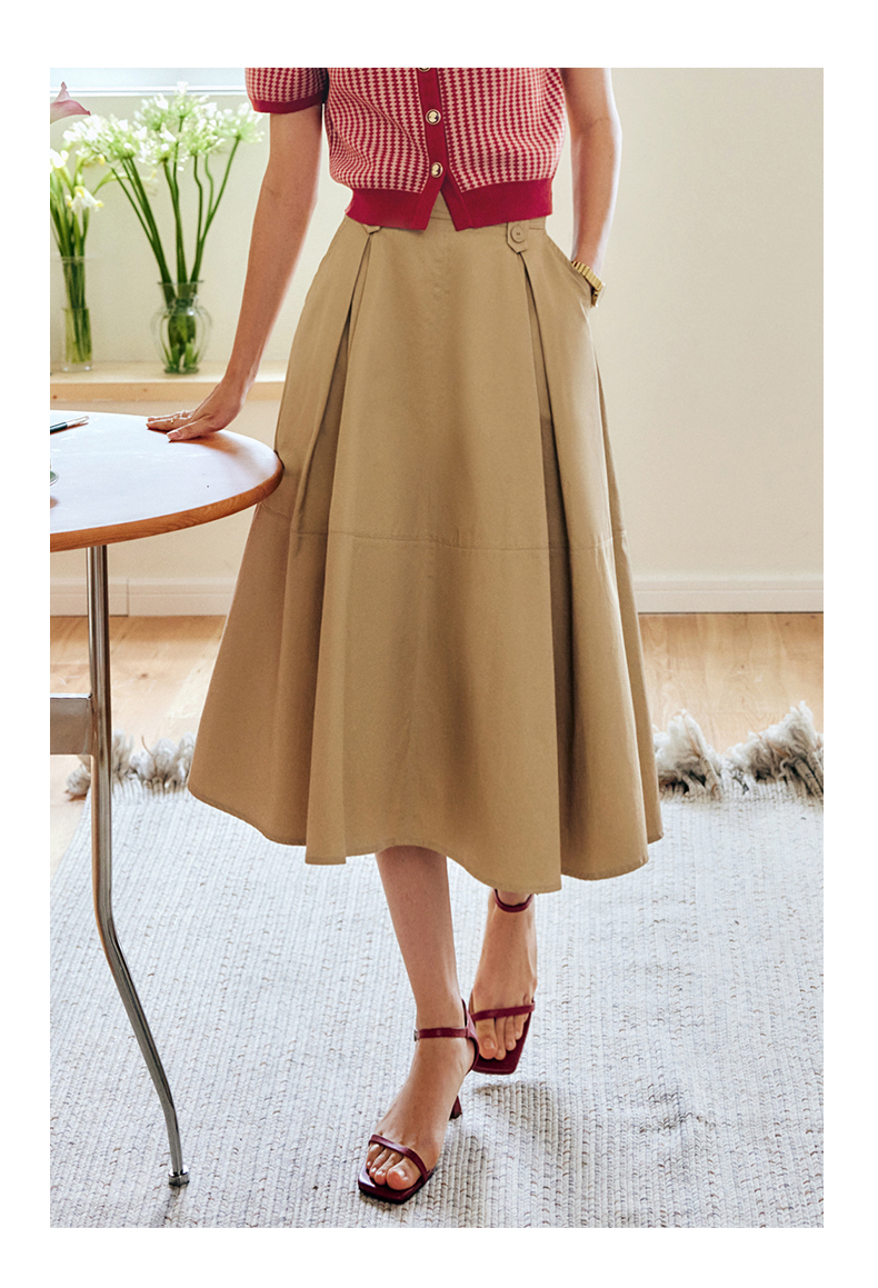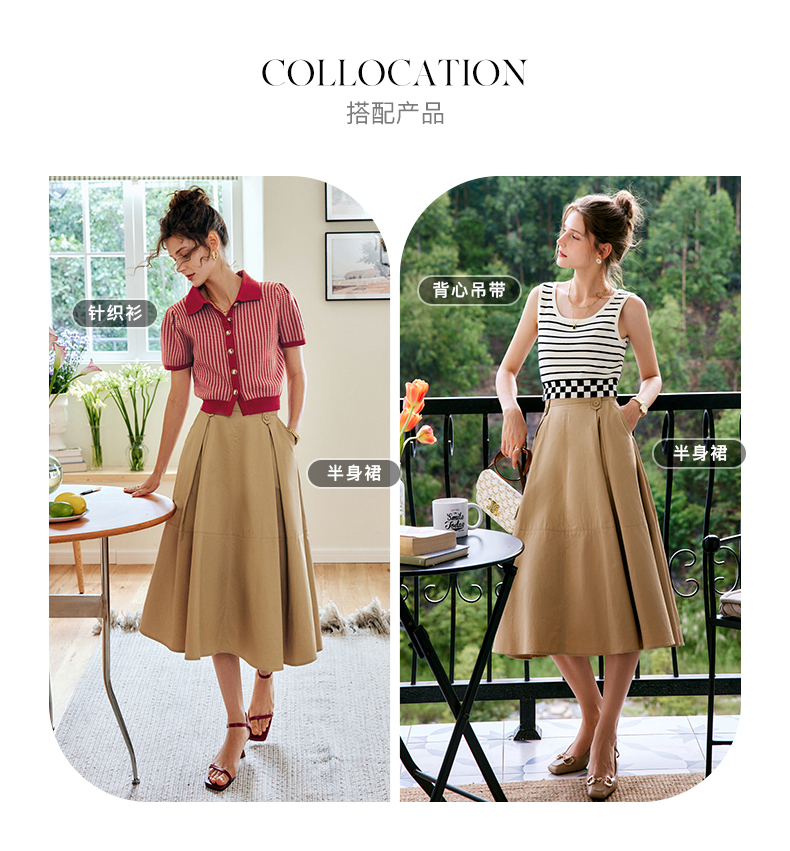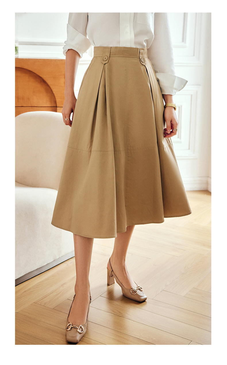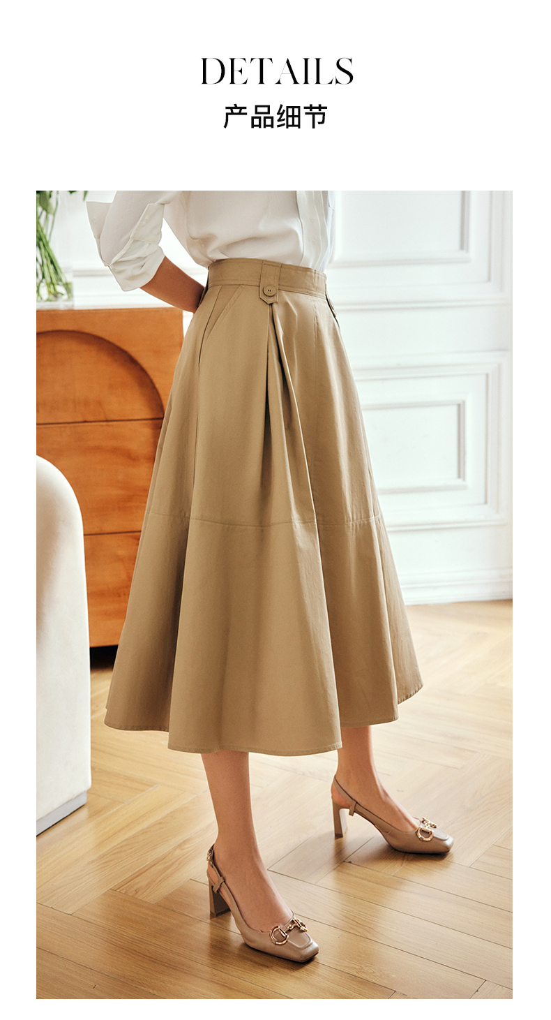 OLrain法式高级穿搭卡其色半身裙女夏季2022年新款气质高腰a字裙