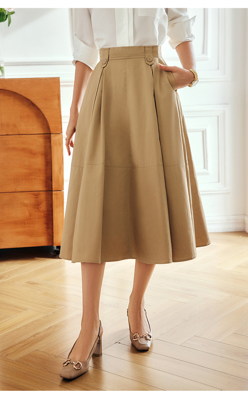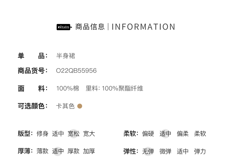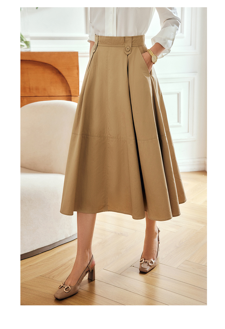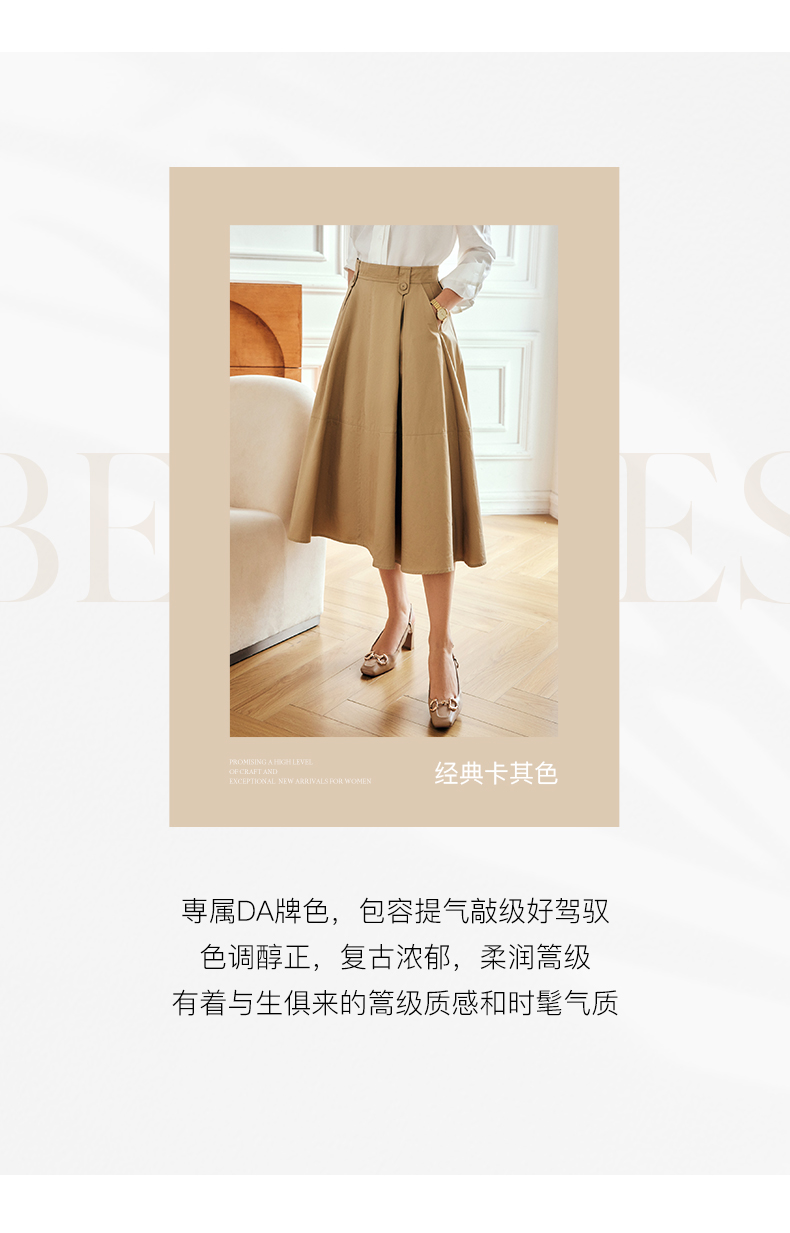 OLrain法式高级穿搭卡其色半身裙女夏季2022年新款气质高腰a字裙