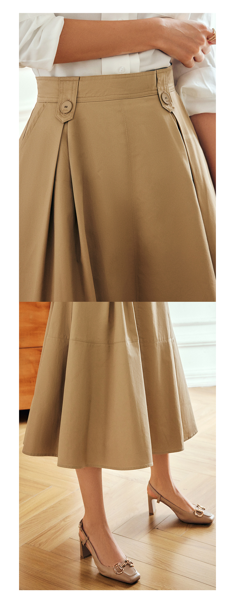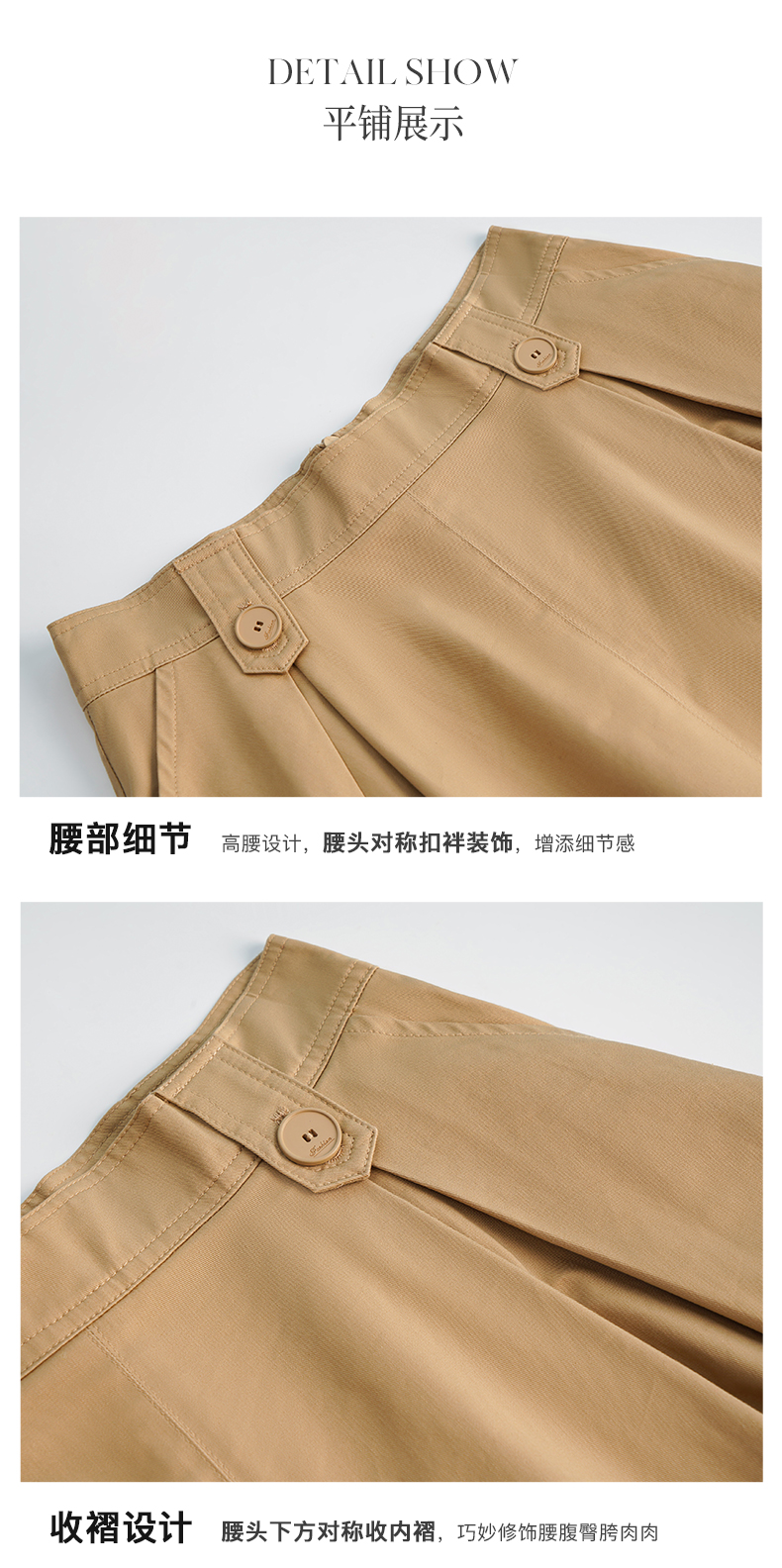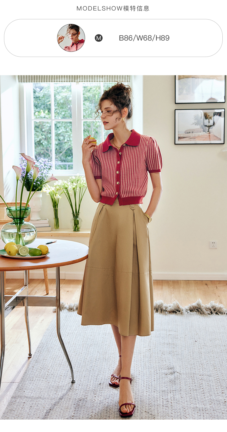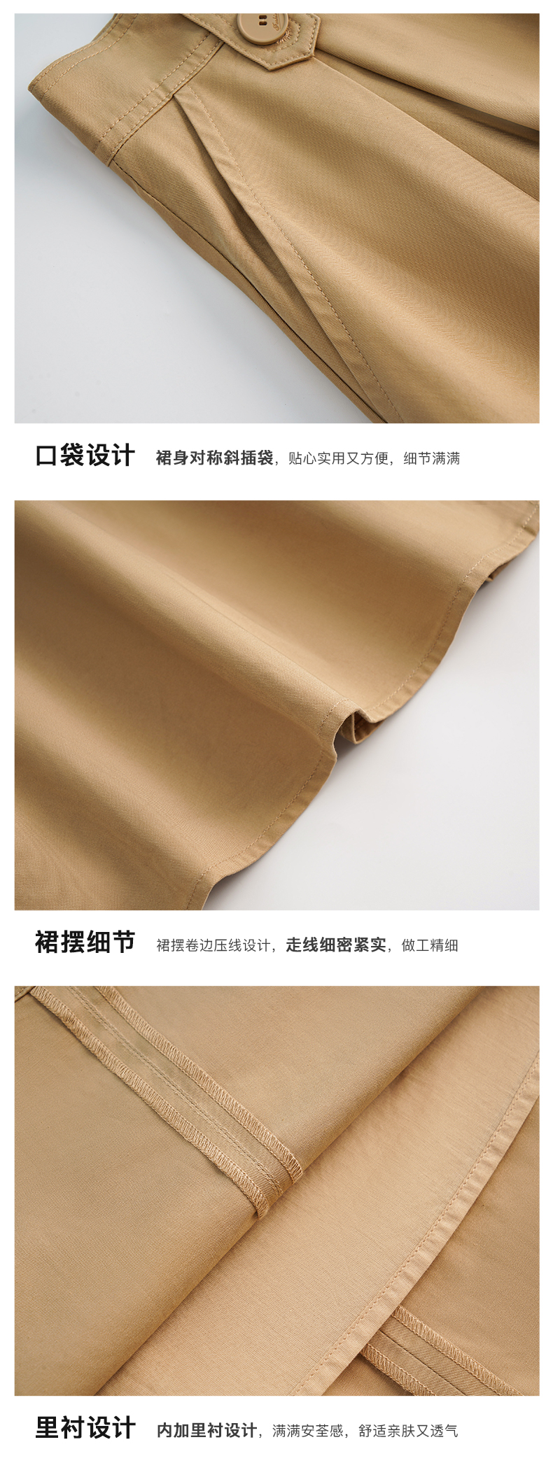 OLrain法式高级穿搭卡其色半身裙女夏季2022年新款气质高腰a字裙