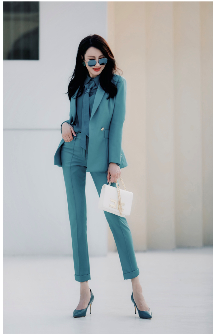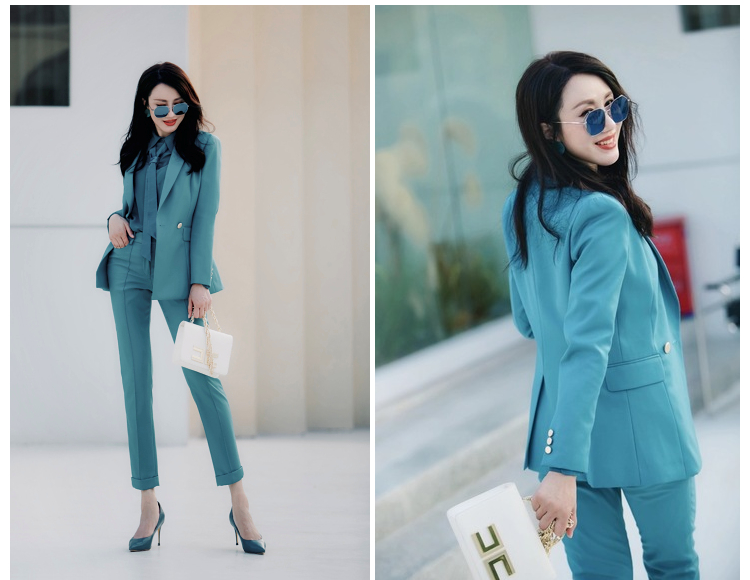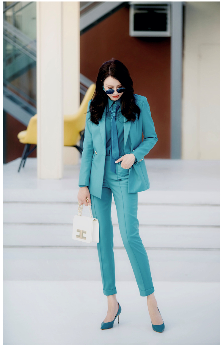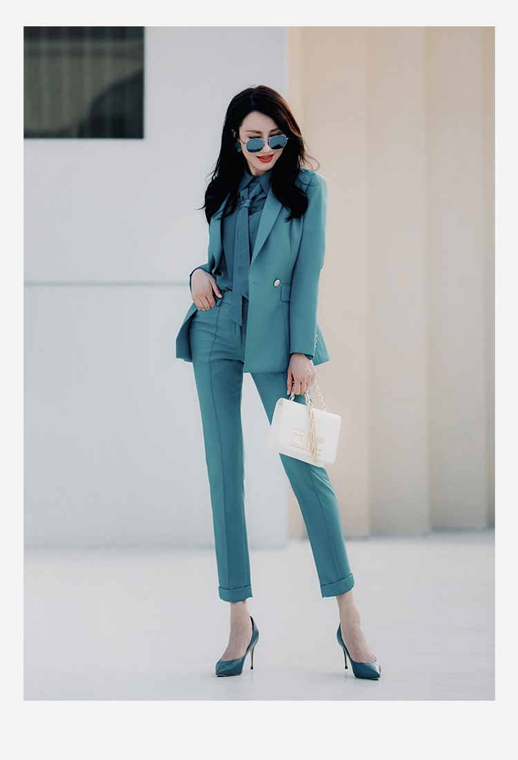 "天空之城”J203A4545A高档气质小西装长裤时尚正装工装西服职业套装女颈袖添香