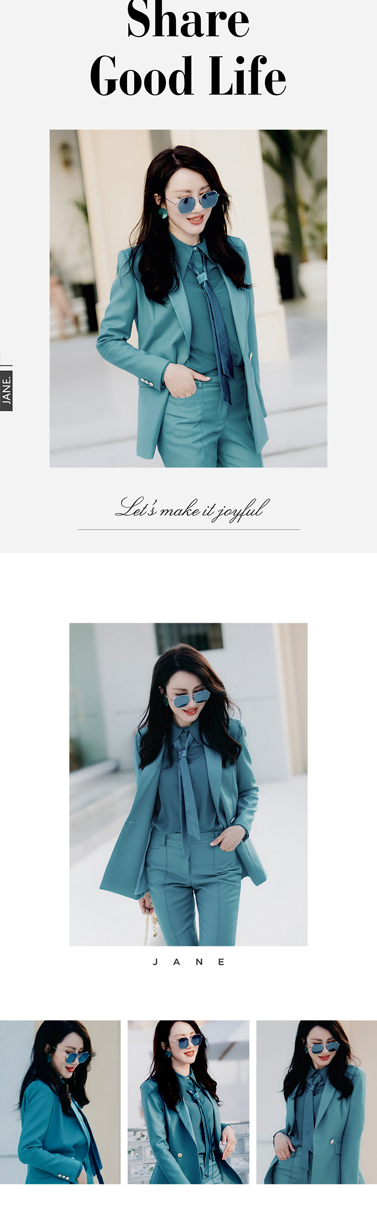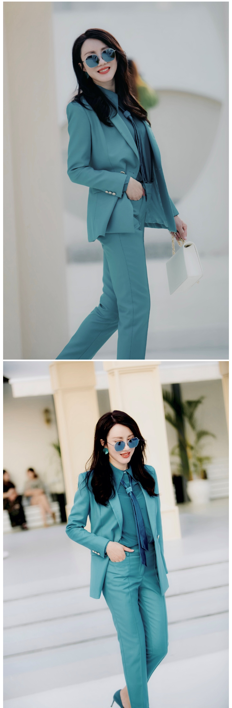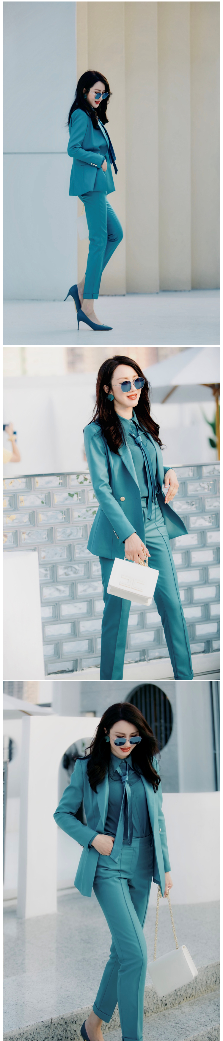 "天空之城”J203A4545A高档气质小西装长裤时尚正装工装西服职业套装女颈袖添香