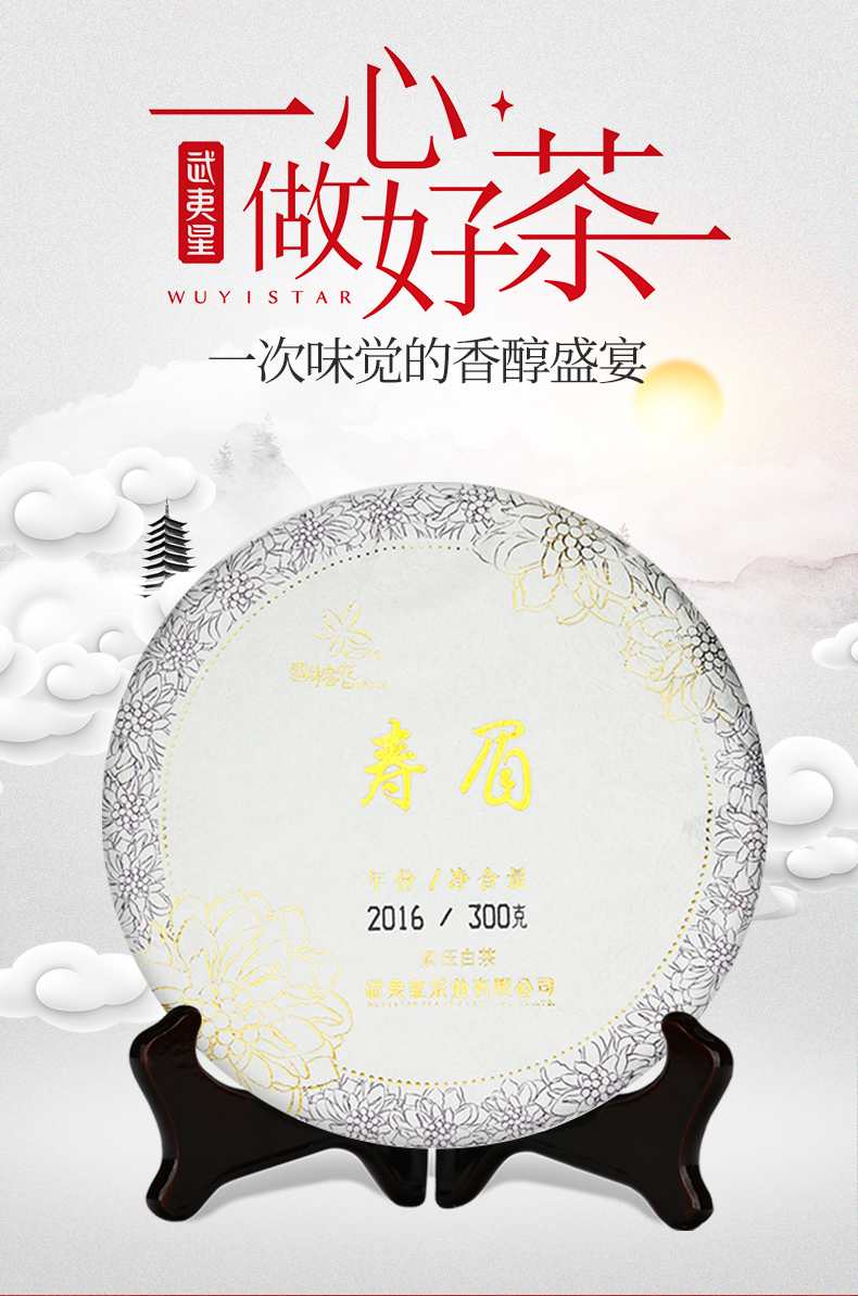 武夷星2016年寿眉300g白茶饼装茶叶福建福鼎白茶老白茶自饮款茶饼
