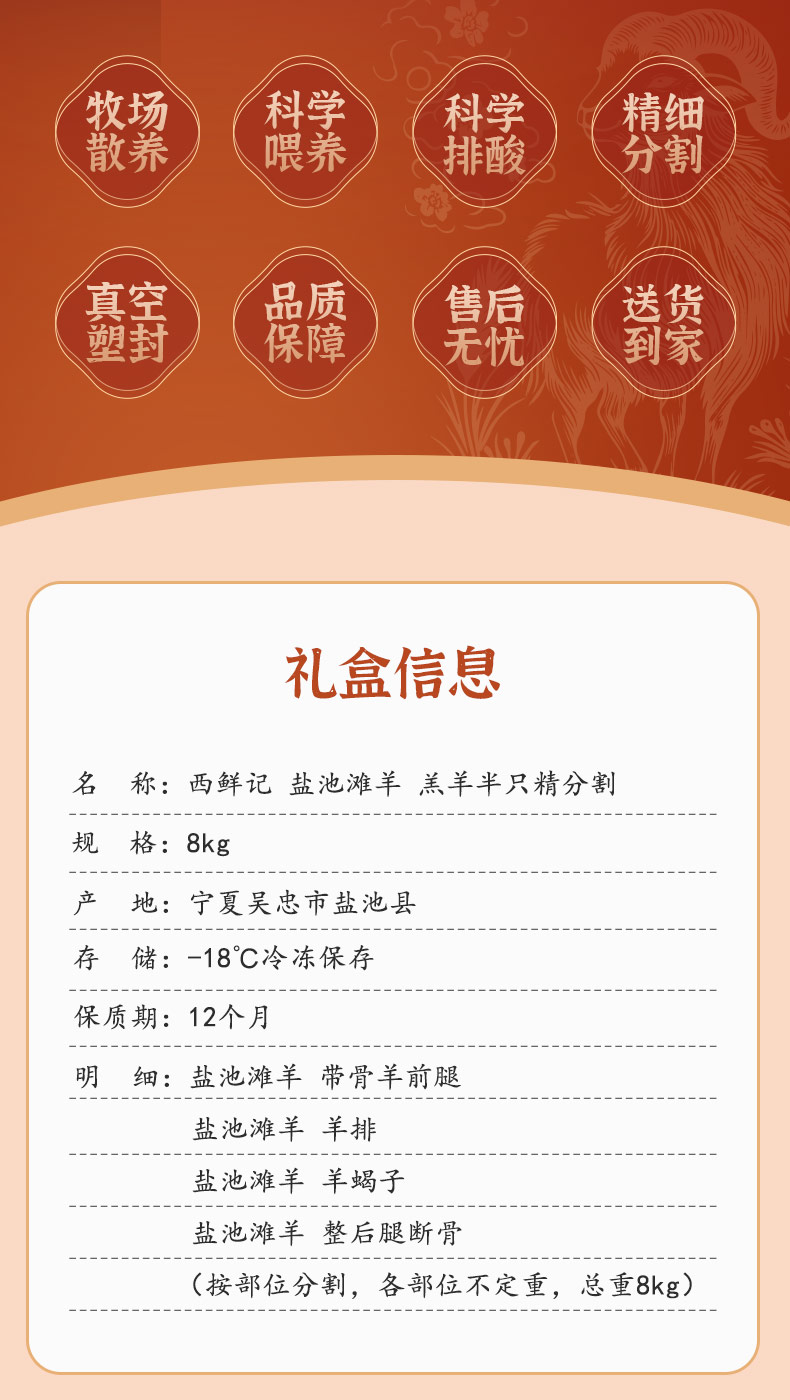 西鲜记 盐池滩羊 羔羊半只精分礼盒 8kg