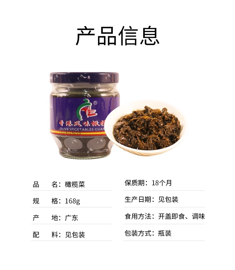 168g 广佳香港风味橄榄菜 方便速食下饭菜榨菜素食菜拌饭拌面橄榄菜